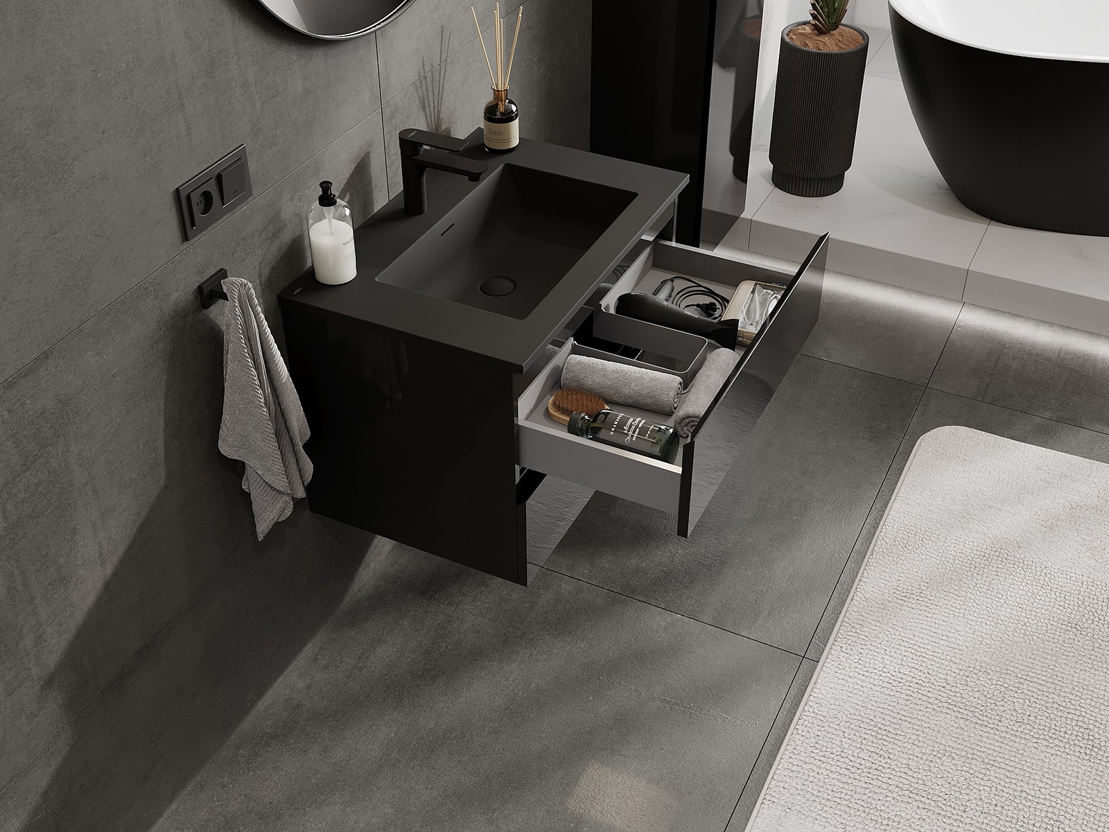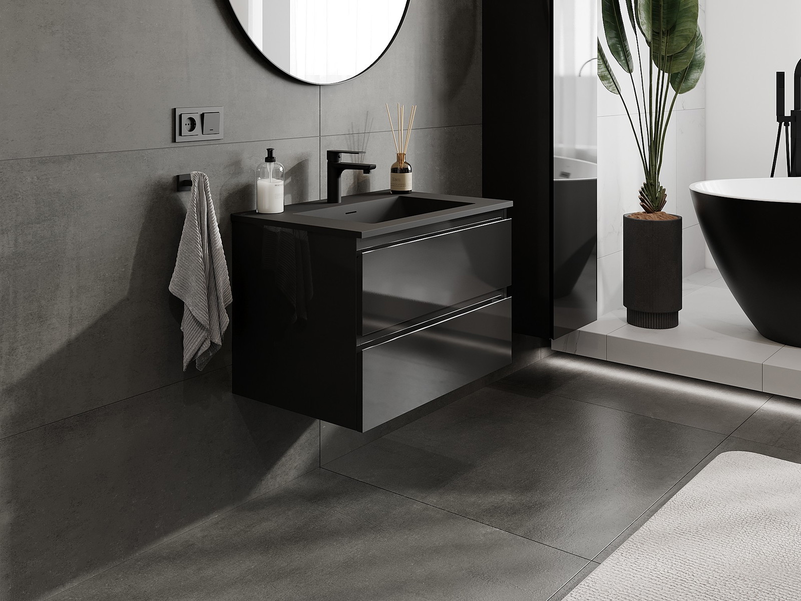 Our modular bathroom furniture can be combined in various colour configurations, allowing for complete personalisation. You can choose both the appearance and functions of individual elements, enabling you to adapt the furniture to your own stylistic and functional preferences.