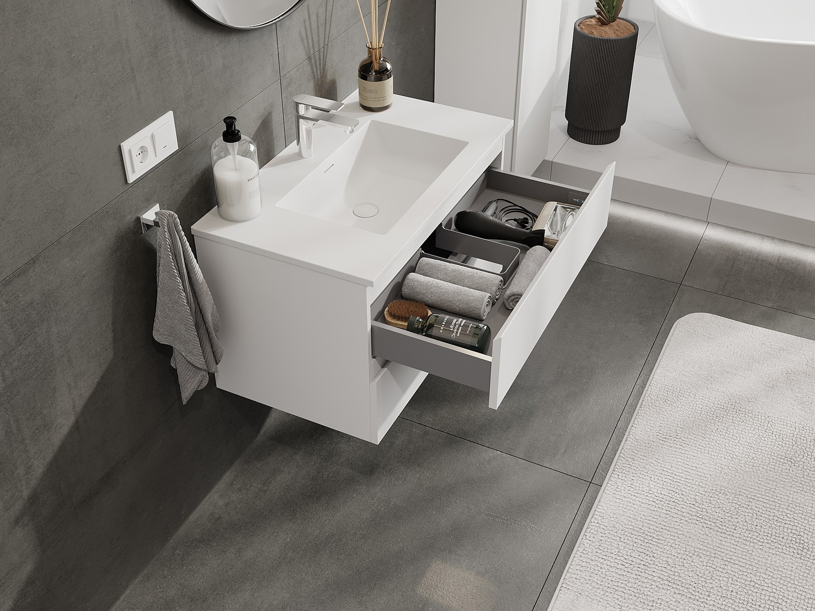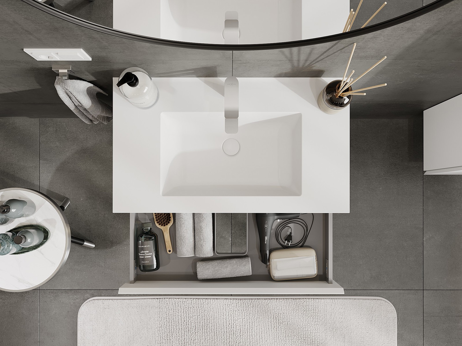 The cabinet carcass is delivered fully assembled, which means maximum convenience and time savings. You don't have to spend hours assembling the furniture – just install it in your chosen spot in the bathroom. This is an ideal solution for those who appreciate quick assembly and immediate results.