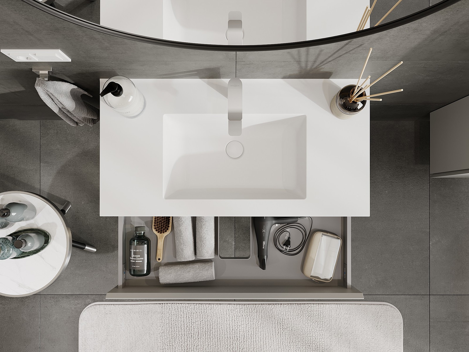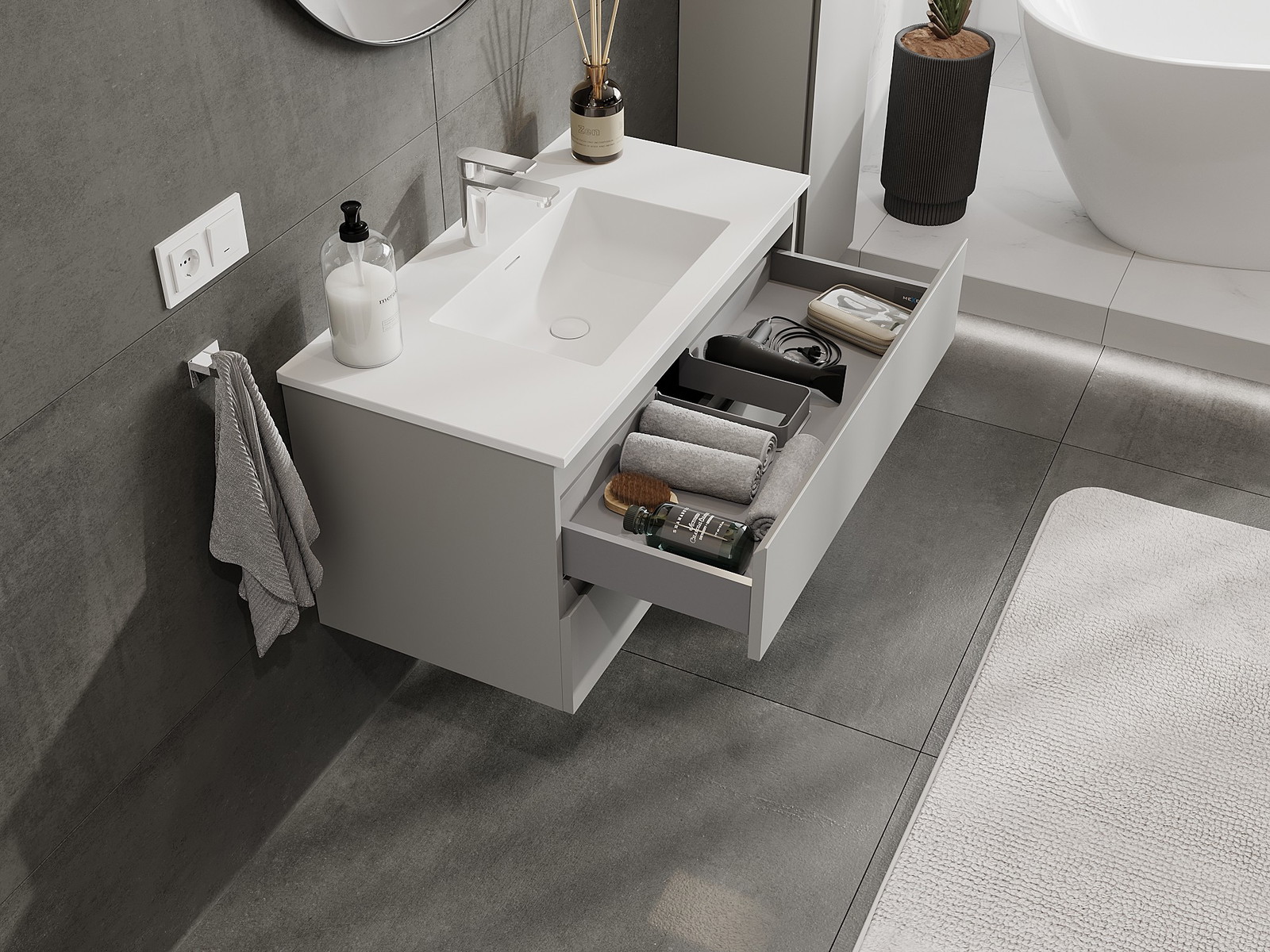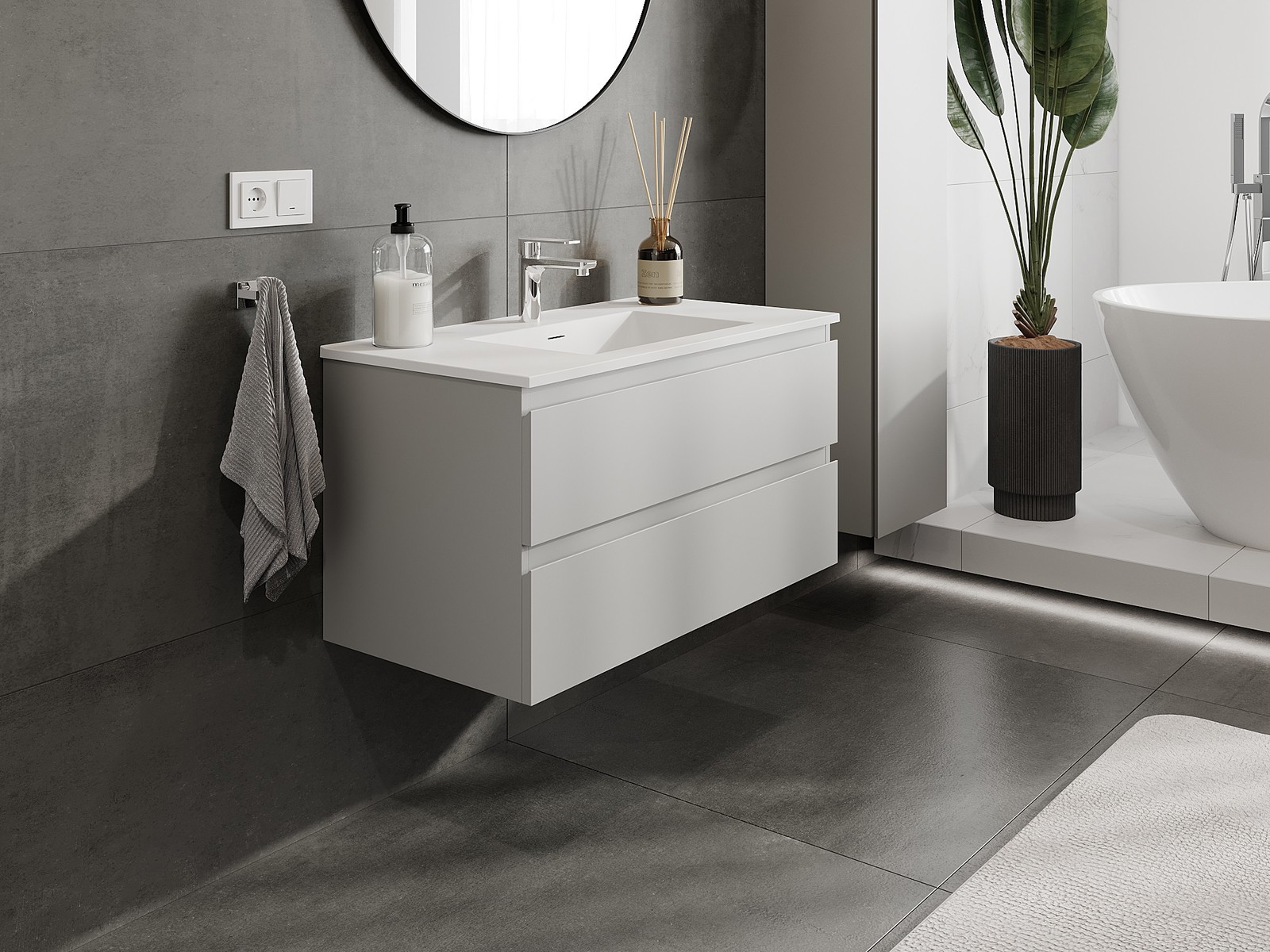 Our modular bathroom furniture can be combined in various colour configurations, allowing for complete personalisation. You can choose both the appearance and functions of individual elements, enabling you to adapt the furniture to your own stylistic and functional preferences.