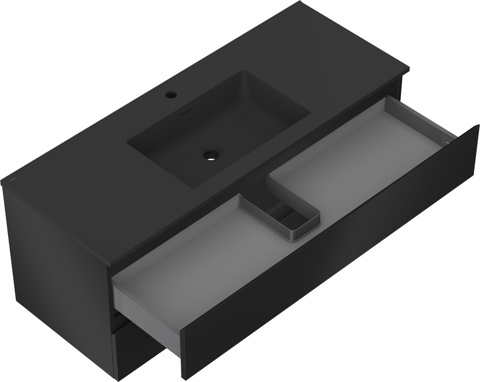 Mexen Orio 120 cm Bathroom Cabinet with Otis Sink, 2 Drawers, Black Matte - 91A10-12047-2-BFF71-W18M71