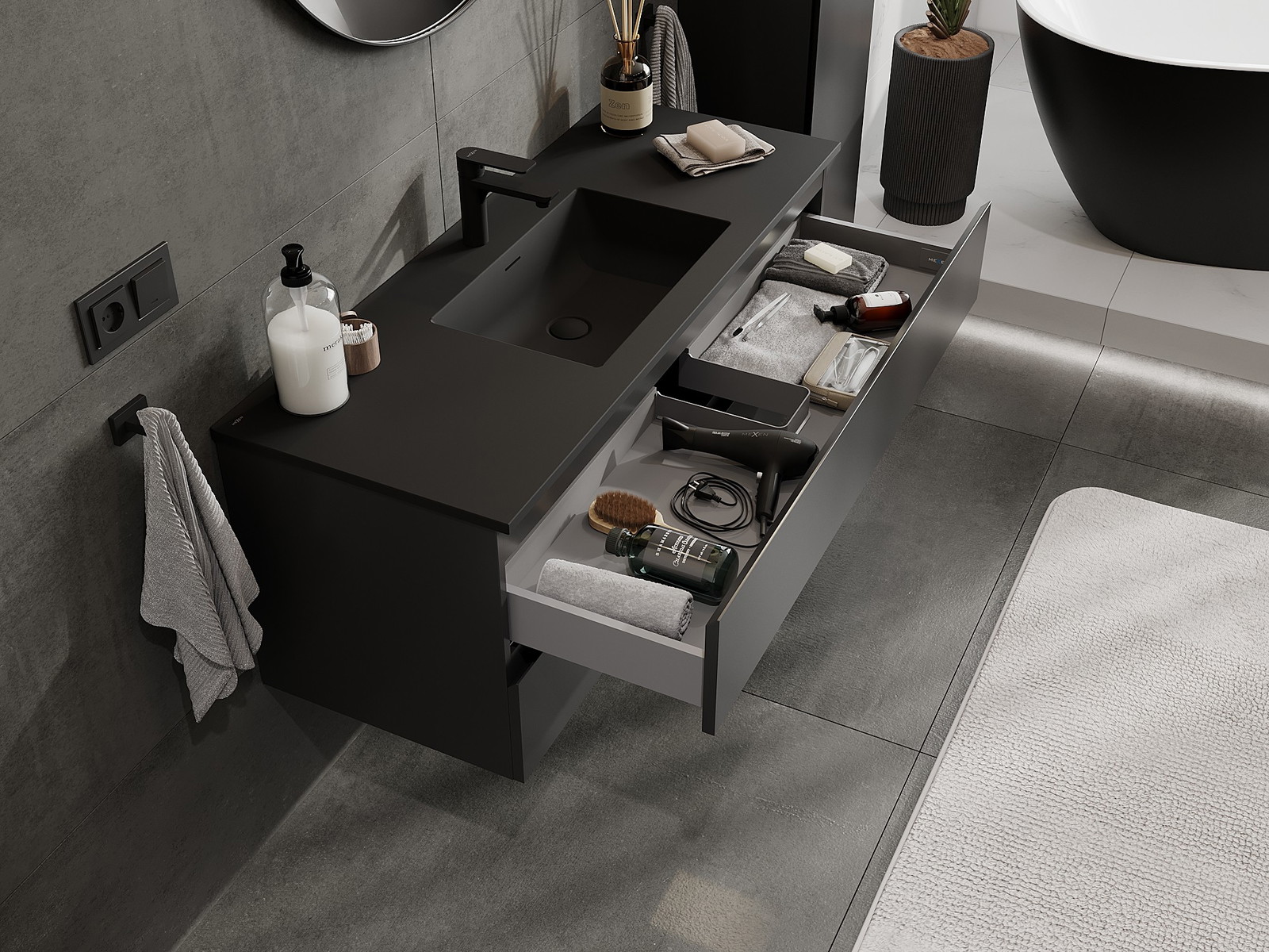 Our modular bathroom furniture can be combined in various colour configurations, allowing for complete personalisation. You can choose both the appearance and functions of individual elements, enabling you to adapt the furniture to your own stylistic and functional preferences.