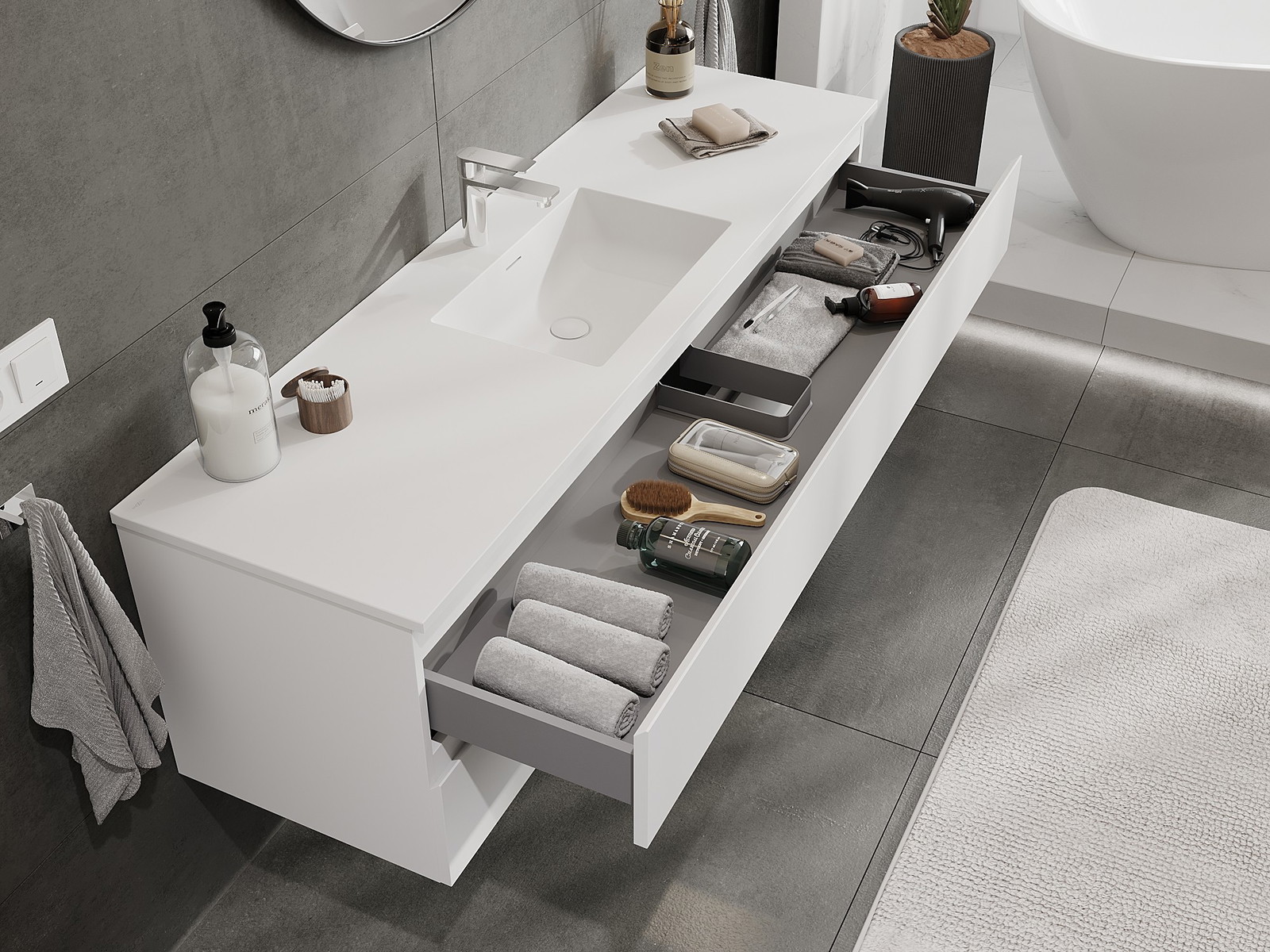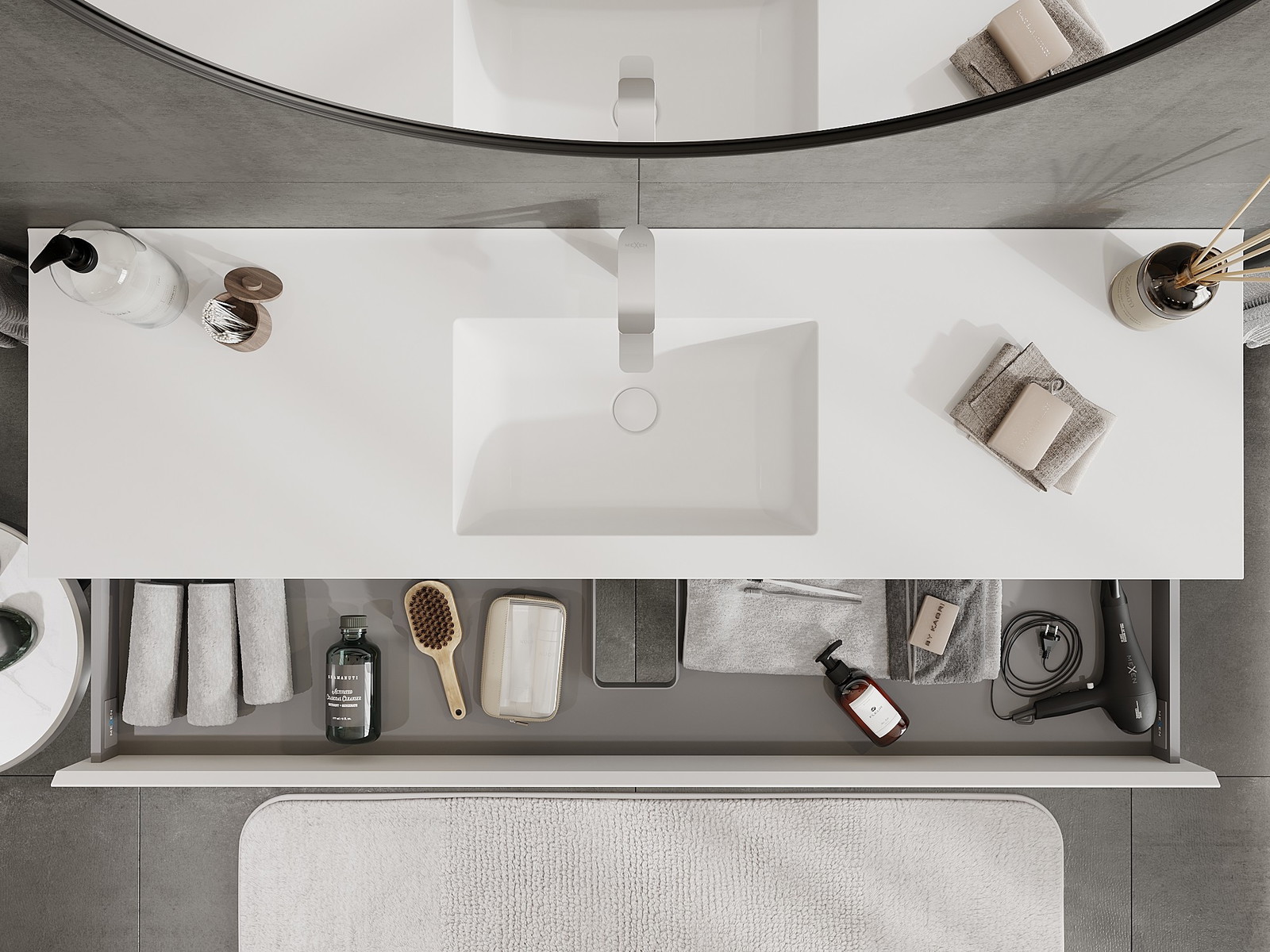 Our modular bathroom furniture can be combined in various colour configurations, allowing for complete personalisation. You can choose both the appearance and functions of individual elements, enabling you to adapt the furniture to your own stylistic and functional preferences.