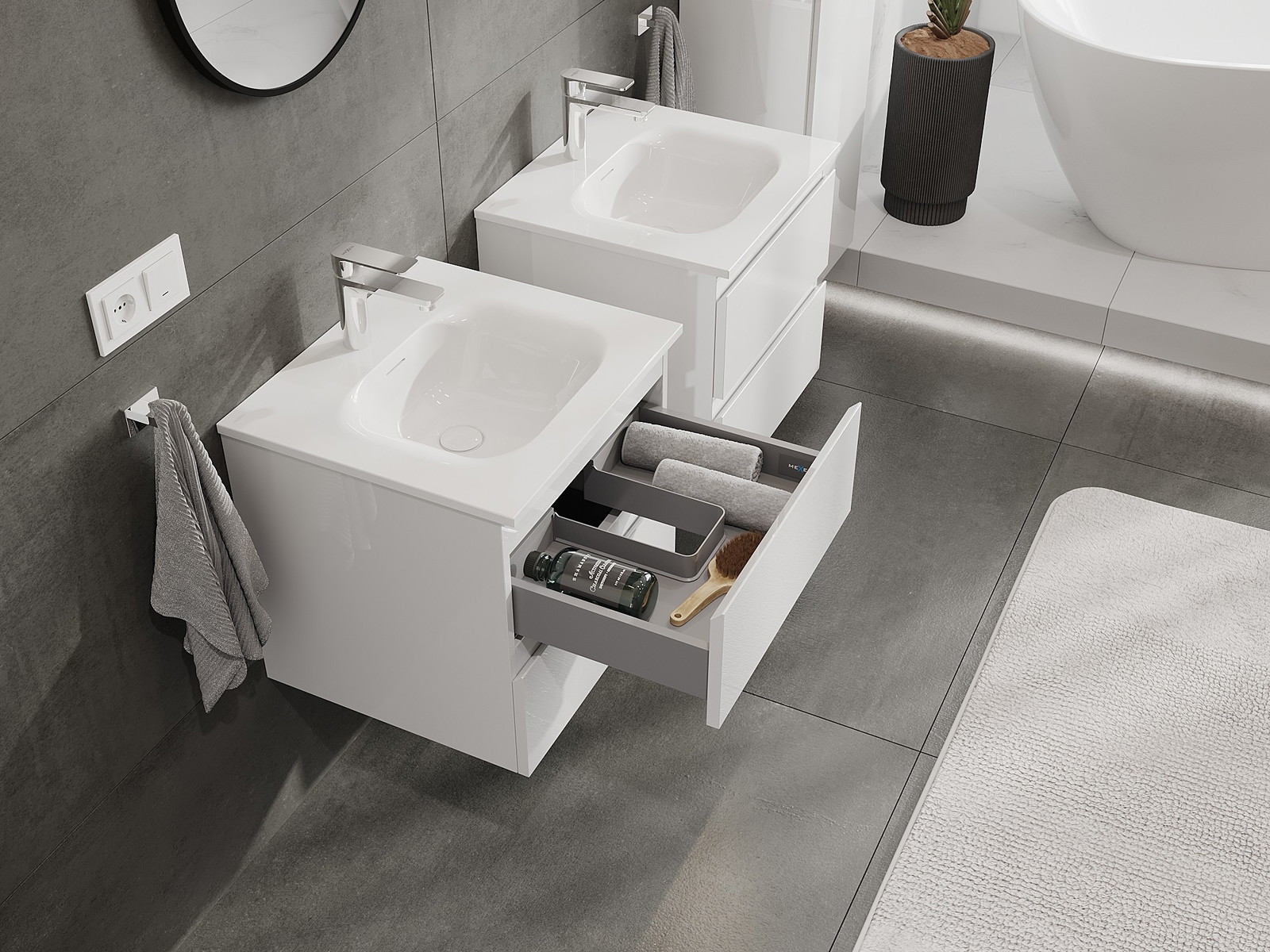 The cabinet carcass is delivered fully assembled, which means maximum convenience and time savings. You don't have to spend hours assembling the furniture – just install it in your chosen spot in the bathroom. This is an ideal solution for those who appreciate quick assembly and immediate results.