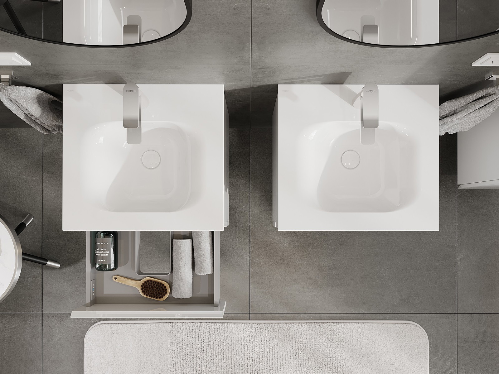 Our modular bathroom furniture can be combined in various colour configurations, allowing for complete personalisation. You can choose both the appearance and functions of individual elements, enabling you to adapt the furniture to your own stylistic and functional preferences.