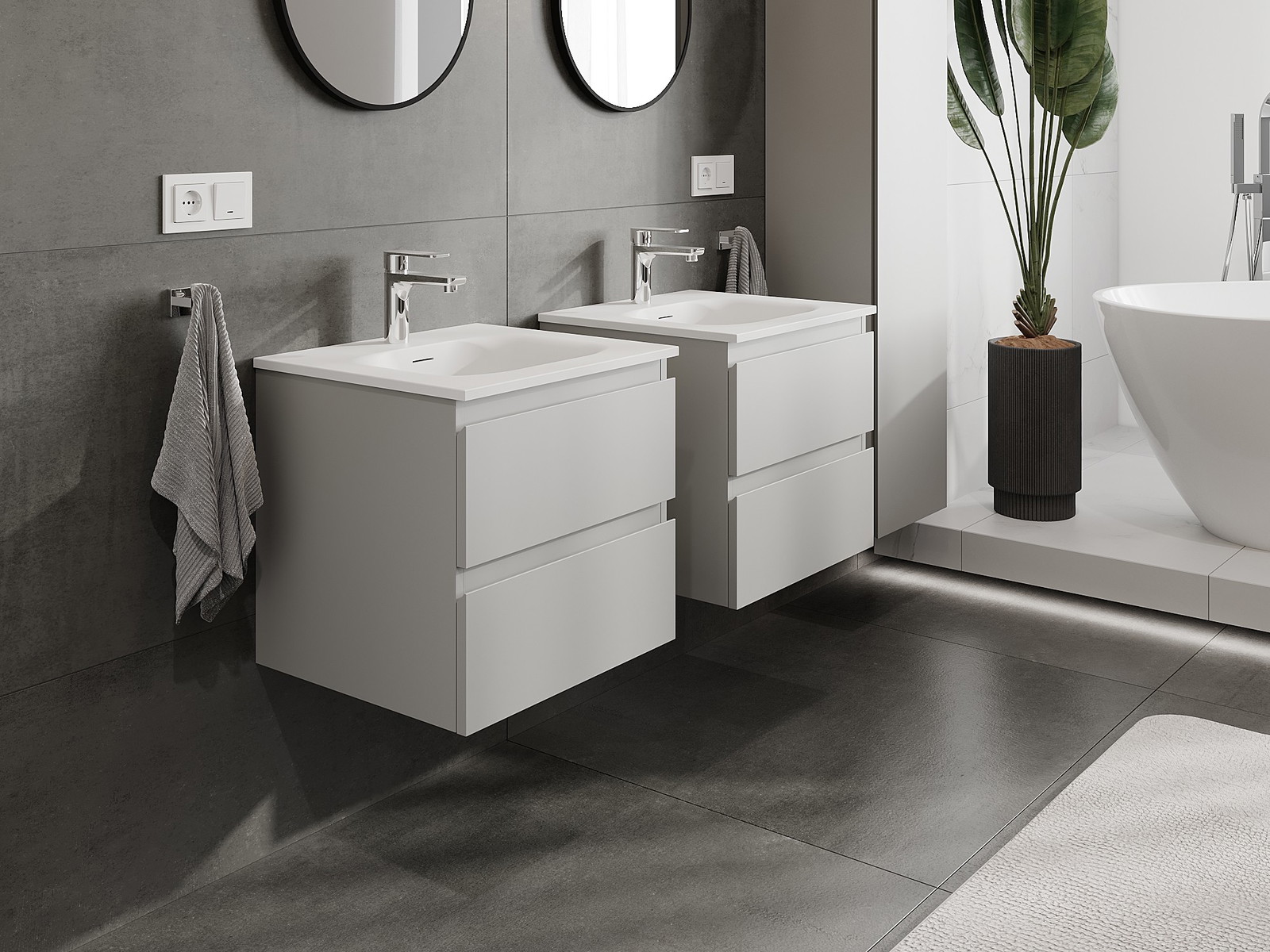 Our modular bathroom furniture can be combined in various colour configurations, allowing for complete personalisation. You can choose both the appearance and functions of individual elements, enabling you to adapt the furniture to your own stylistic and functional preferences.