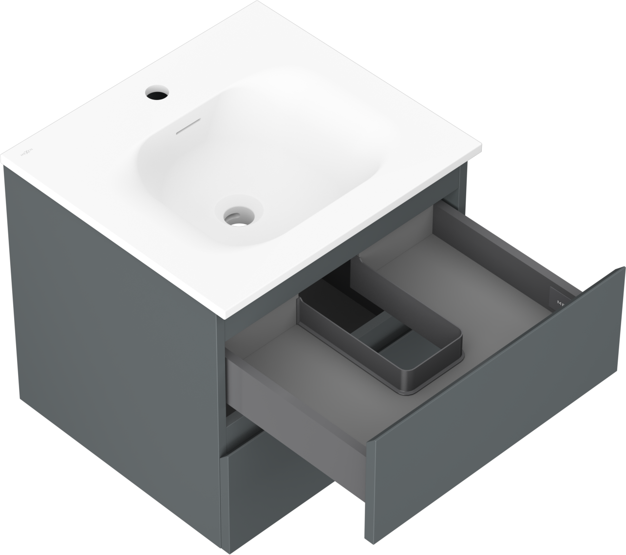 The cutout in the drawer is designed in such a way as to accommodate the siphon, which is essential in sink installations. This allows the furniture to be fully functional without having to give up drawer space for the installation.