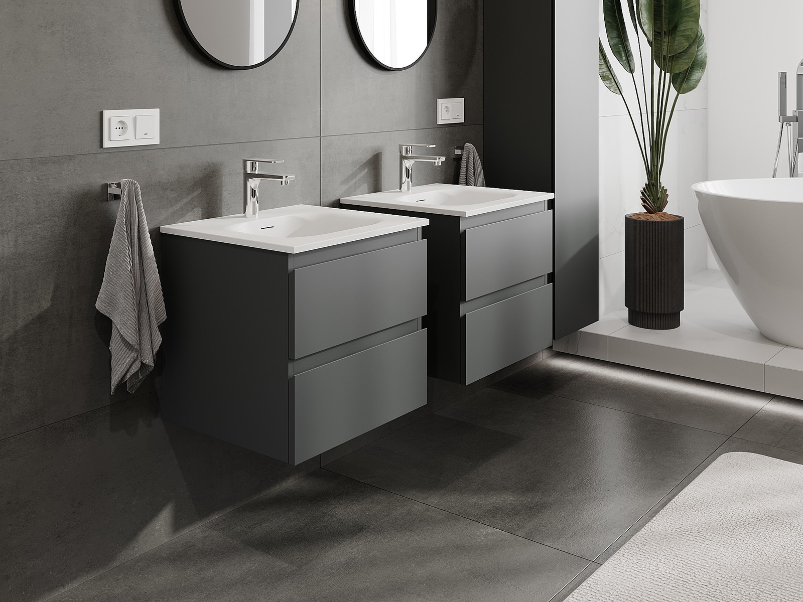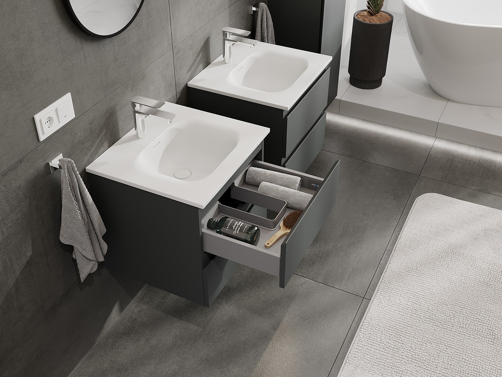 Our modular bathroom furniture can be combined in various colour configurations, allowing for complete personalisation. You can choose both the appearance and functions of individual elements, enabling you to adapt the furniture to your own stylistic and functional preferences.