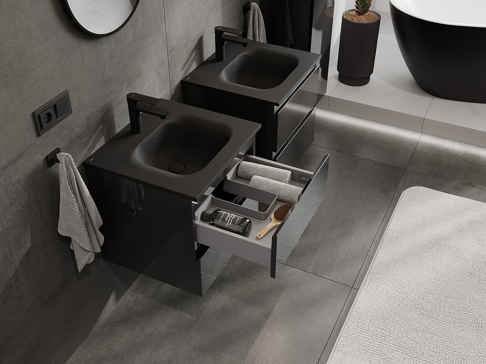 Our modular bathroom furniture can be combined in various colour configurations, allowing for complete personalisation. You can choose both the appearance and functions of individual elements, enabling you to adapt the furniture to your own stylistic and functional preferences.