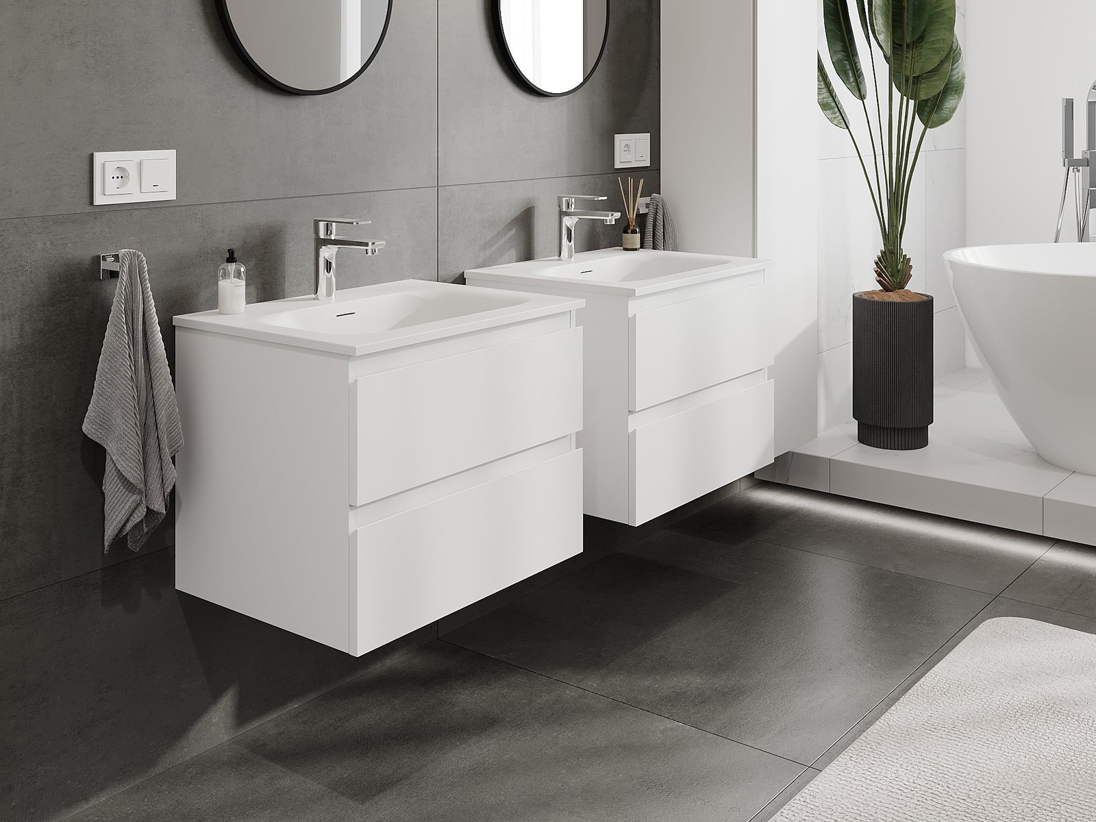 Our modular bathroom furniture can be combined in various colour configurations, allowing for complete personalisation. You can choose both the appearance and functions of individual elements, enabling you to adapt the furniture to your own stylistic and functional preferences.