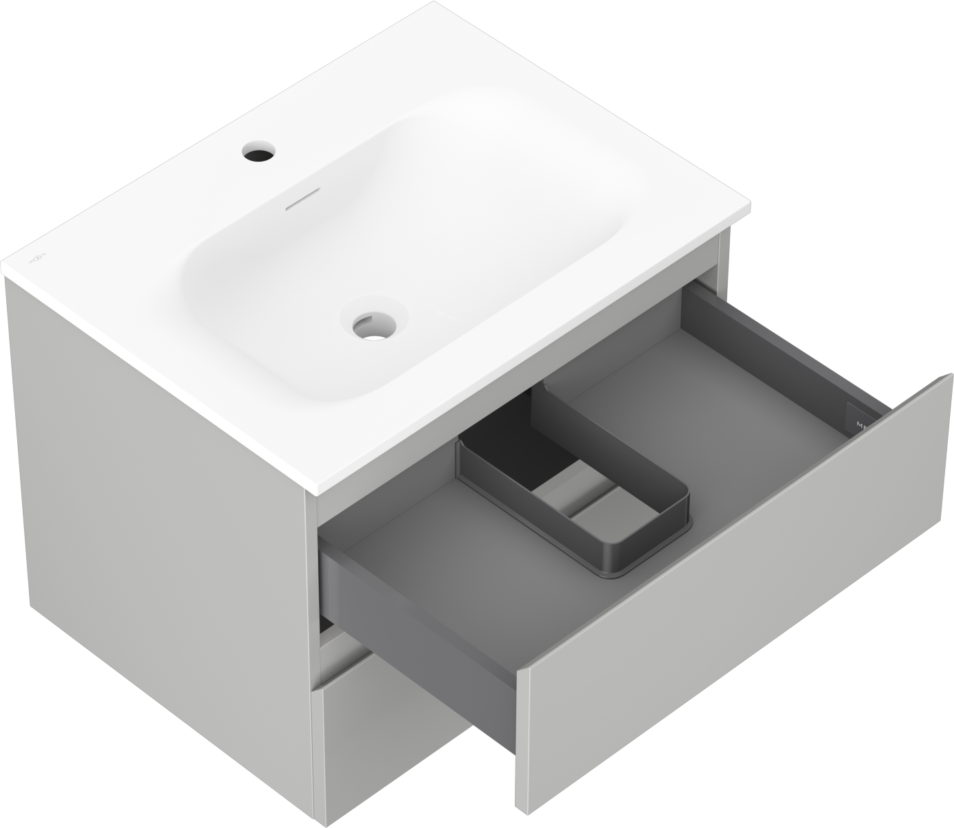 The cutout in the drawer is designed in such a way as to accommodate the siphon, which is essential in sink installations. This allows the furniture to be fully functional without having to give up drawer space for the installation.