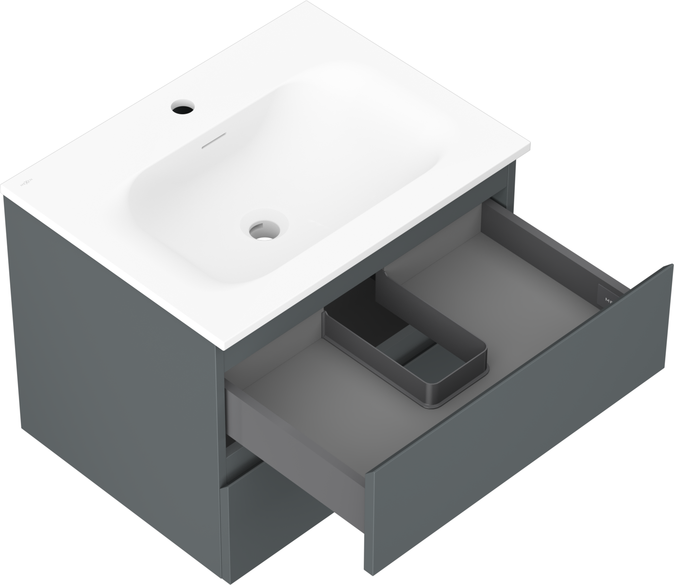 The cutout in the drawer is designed in such a way as to accommodate the siphon, which is essential in sink installations. This allows the furniture to be fully functional without having to give up drawer space for the installation.