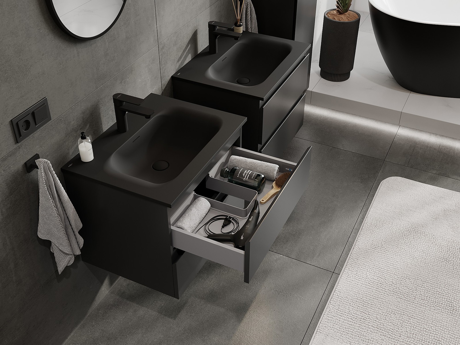 Our modular bathroom furniture can be combined in various colour configurations, allowing for complete personalisation. You can choose both the appearance and functions of individual elements, enabling you to adapt the furniture to your own stylistic and functional preferences.