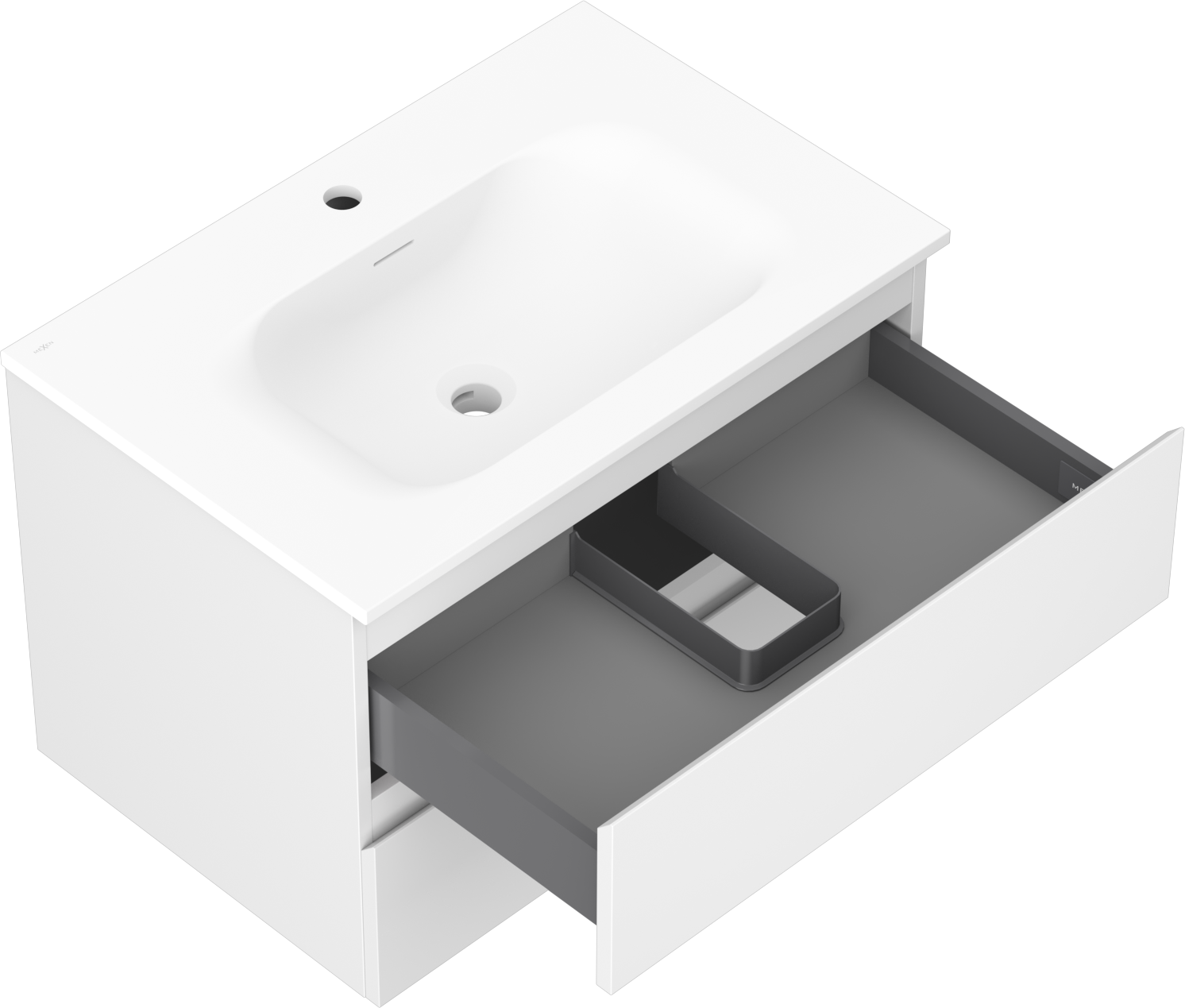The cutout in the drawer is designed in such a way as to accommodate the siphon, which is essential in sink installations. This allows the furniture to be fully functional without having to give up drawer space for the installation.