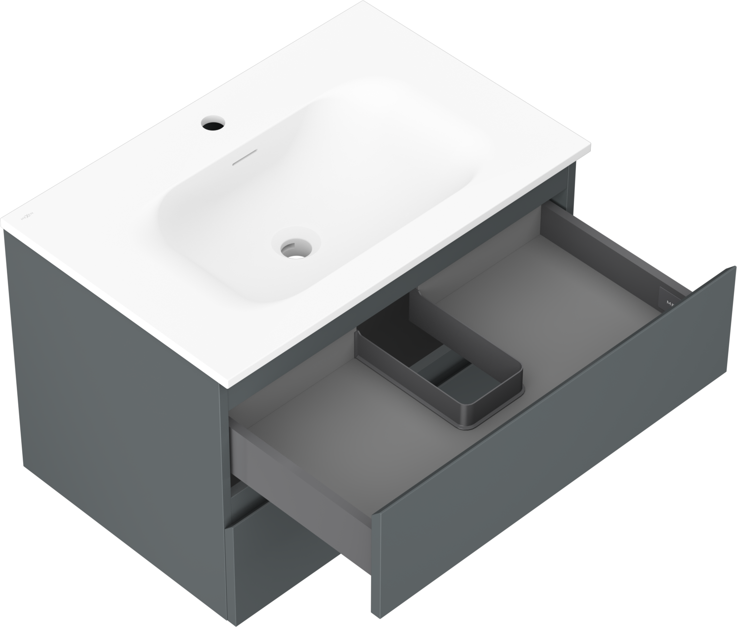The cutout in the drawer is designed in such a way as to accommodate the siphon, which is essential in sink installations. This allows the furniture to be fully functional without having to give up drawer space for the installation.