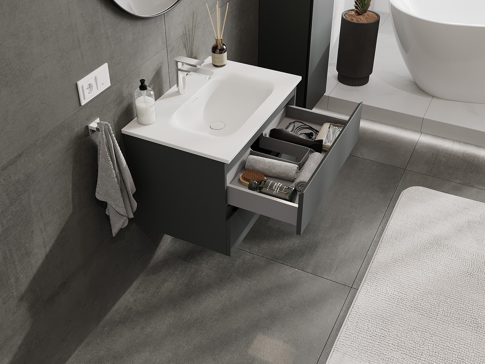 The cabinet carcass is delivered fully assembled, which means maximum convenience and time savings. You don't have to spend hours assembling the furniture – just install it in your chosen spot in the bathroom. This is an ideal solution for those who appreciate quick assembly and immediate results.