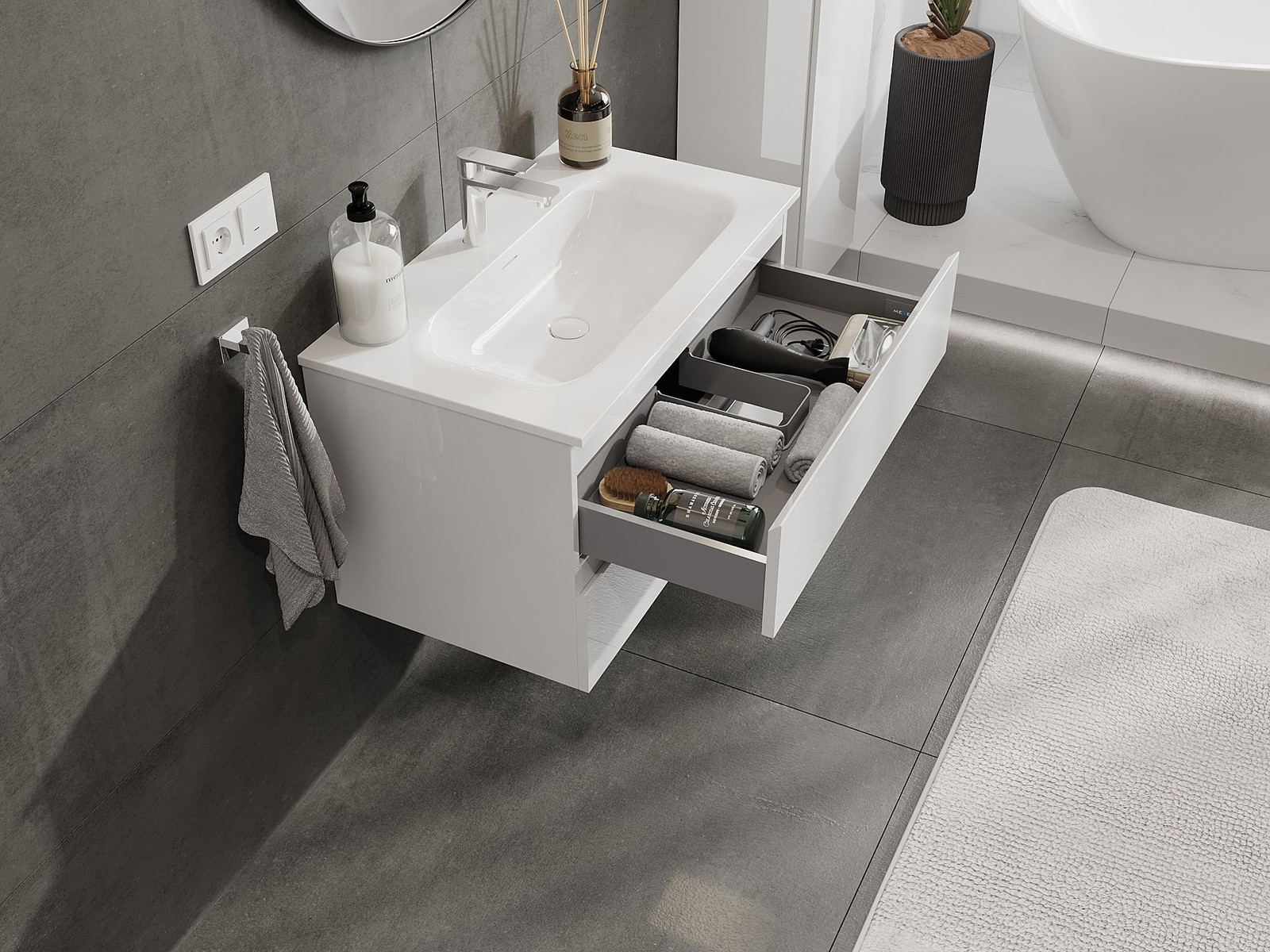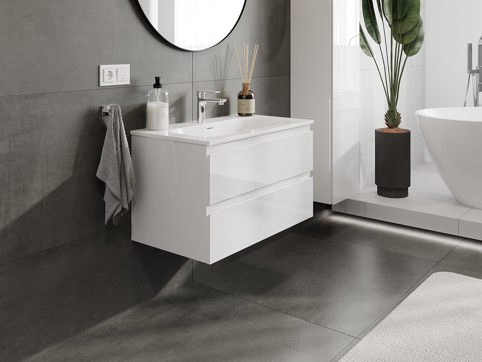 Our modular bathroom furniture can be combined in various colour configurations, allowing for complete personalisation. You can choose both the appearance and functions of individual elements, enabling you to adapt the furniture to your own stylistic and functional preferences.