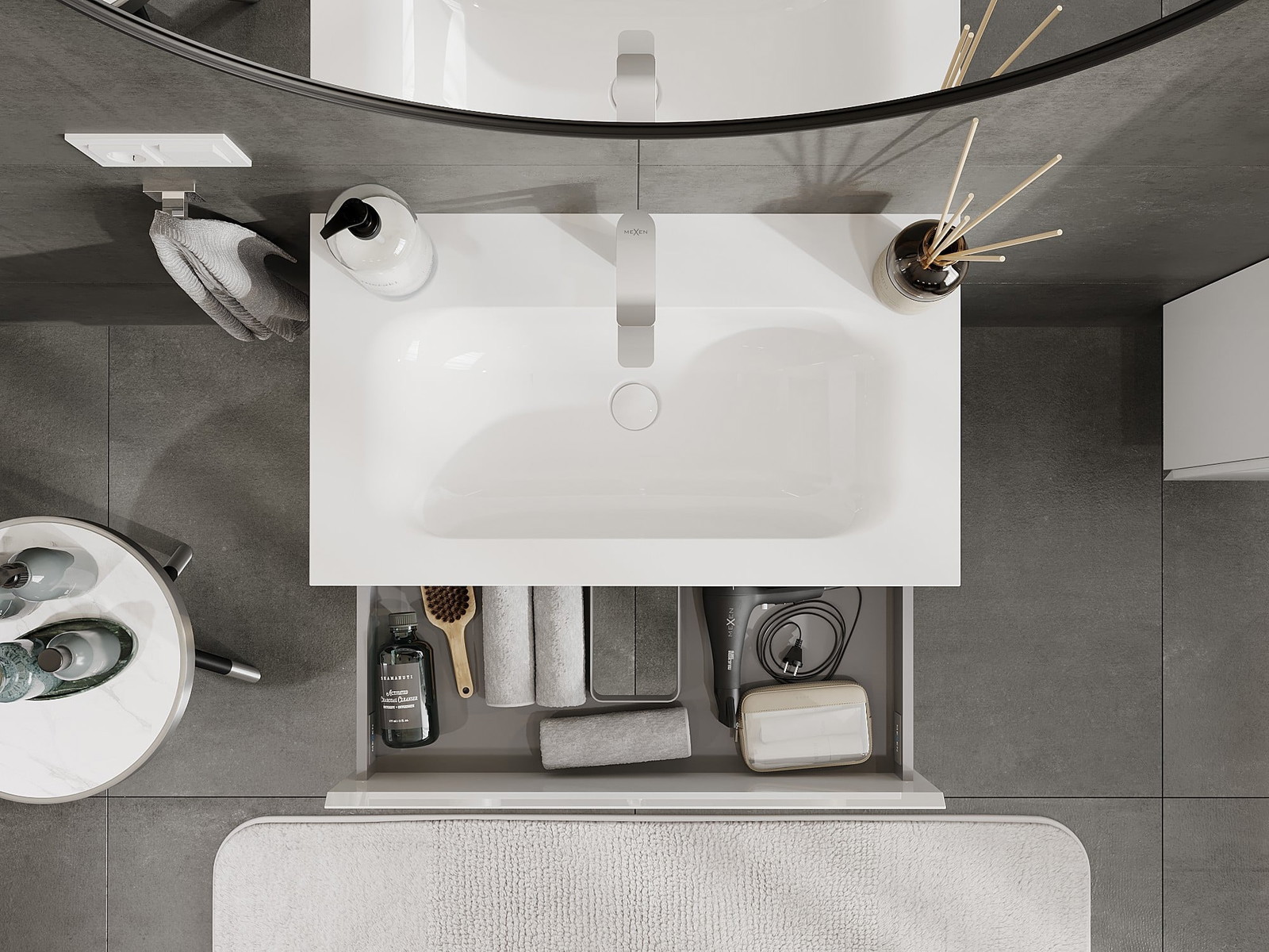 The washbasin has an opening where we can install a tap. This allows for saving valuable space in the bathroom and enhances its aesthetics. This solution also makes it easier to maintain cleanliness around the washbasin.
