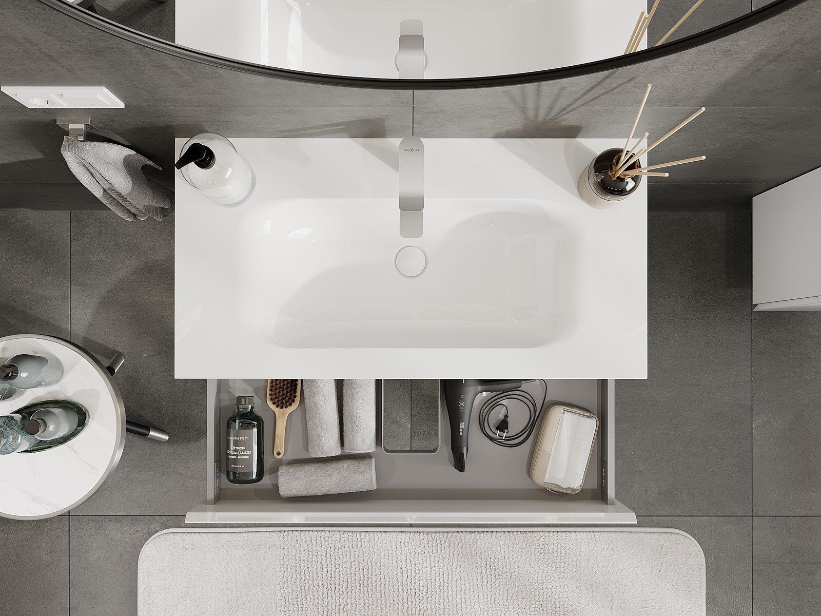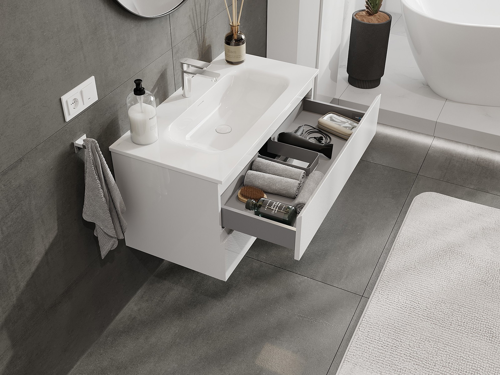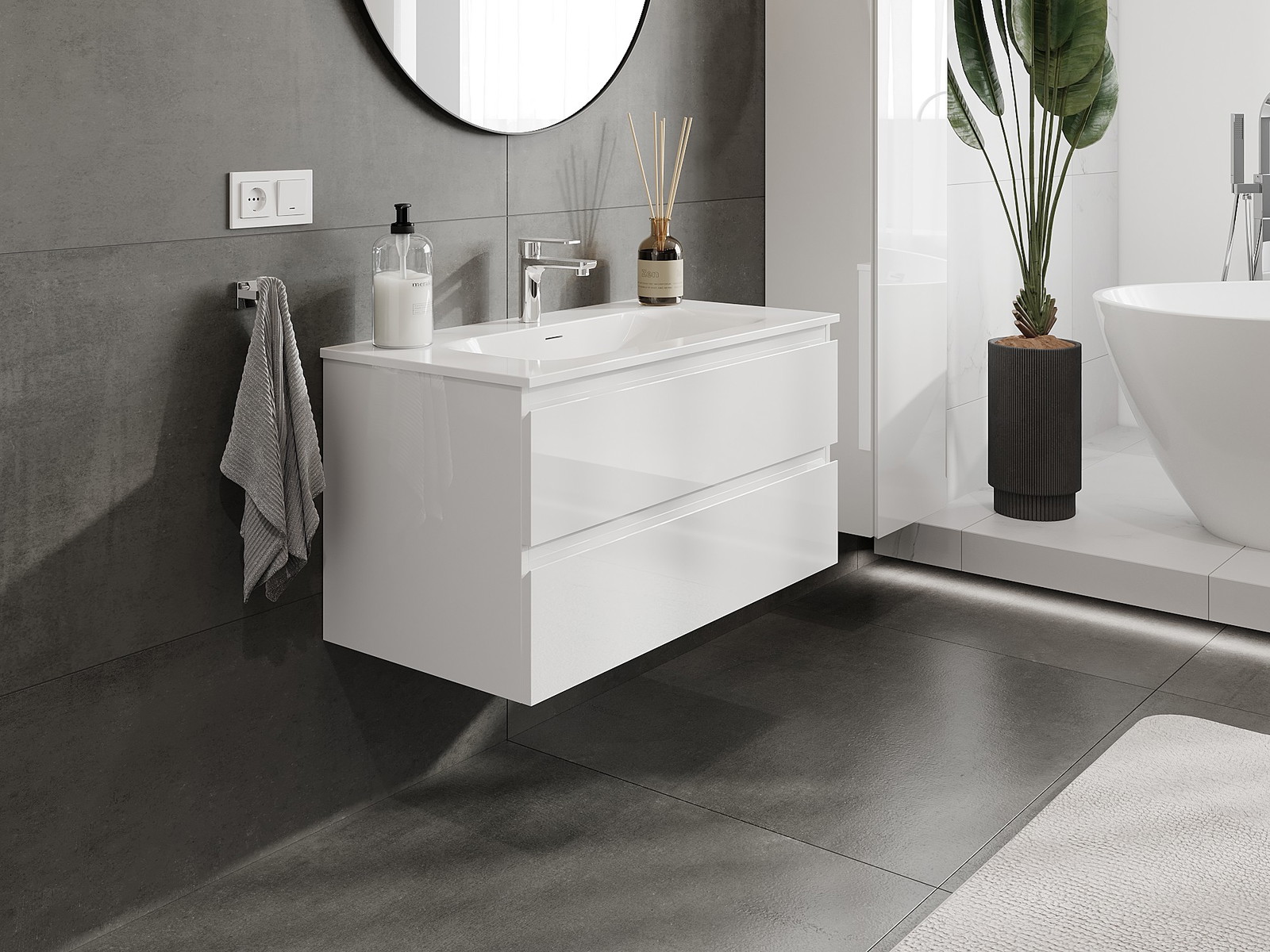 Our modular bathroom furniture can be combined in various colour configurations, allowing for complete personalisation. You can choose both the appearance and functions of individual elements, enabling you to adapt the furniture to your own stylistic and functional preferences.