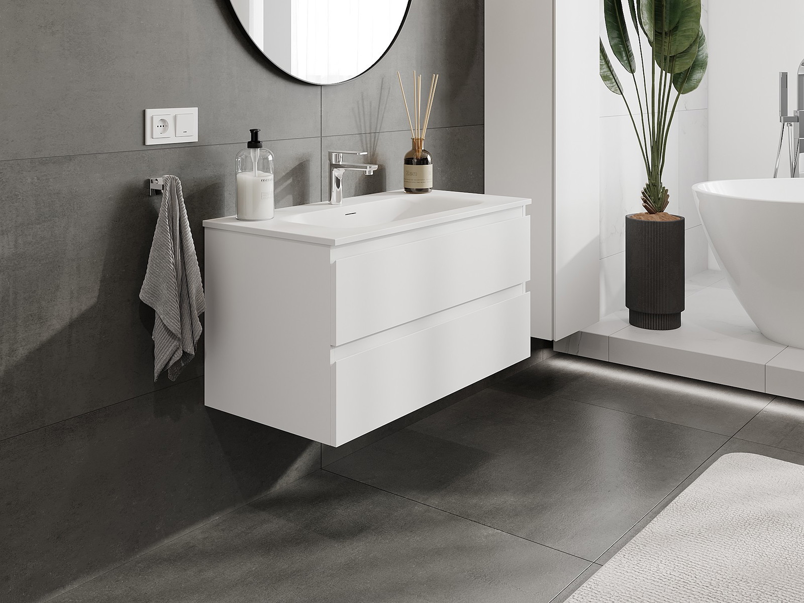 Our modular bathroom furniture can be combined in various colour configurations, allowing for complete personalisation. You can choose both the appearance and functions of individual elements, enabling you to adapt the furniture to your own stylistic and functional preferences.