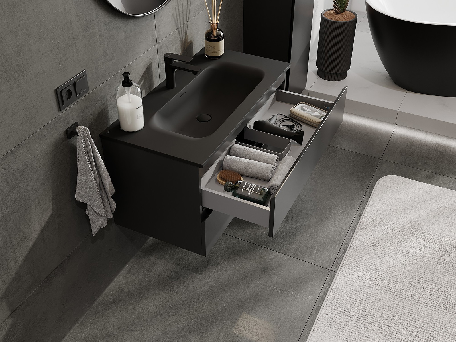 Our modular bathroom furniture can be combined in various colour configurations, allowing for complete personalisation. You can choose both the appearance and functions of individual elements, enabling you to adapt the furniture to your own stylistic and functional preferences.