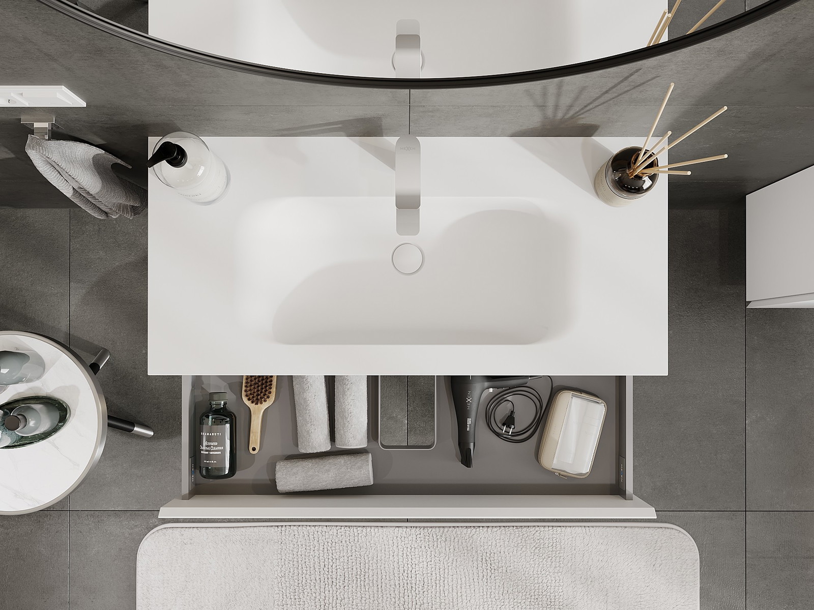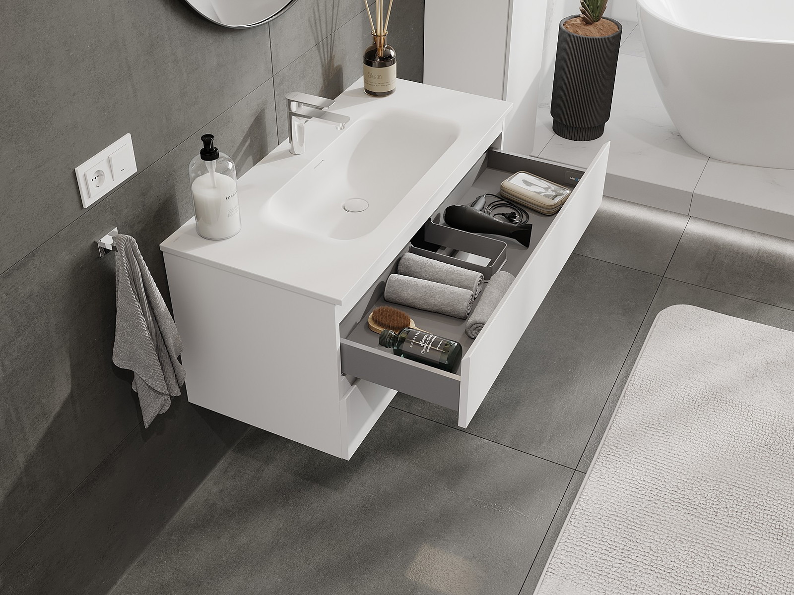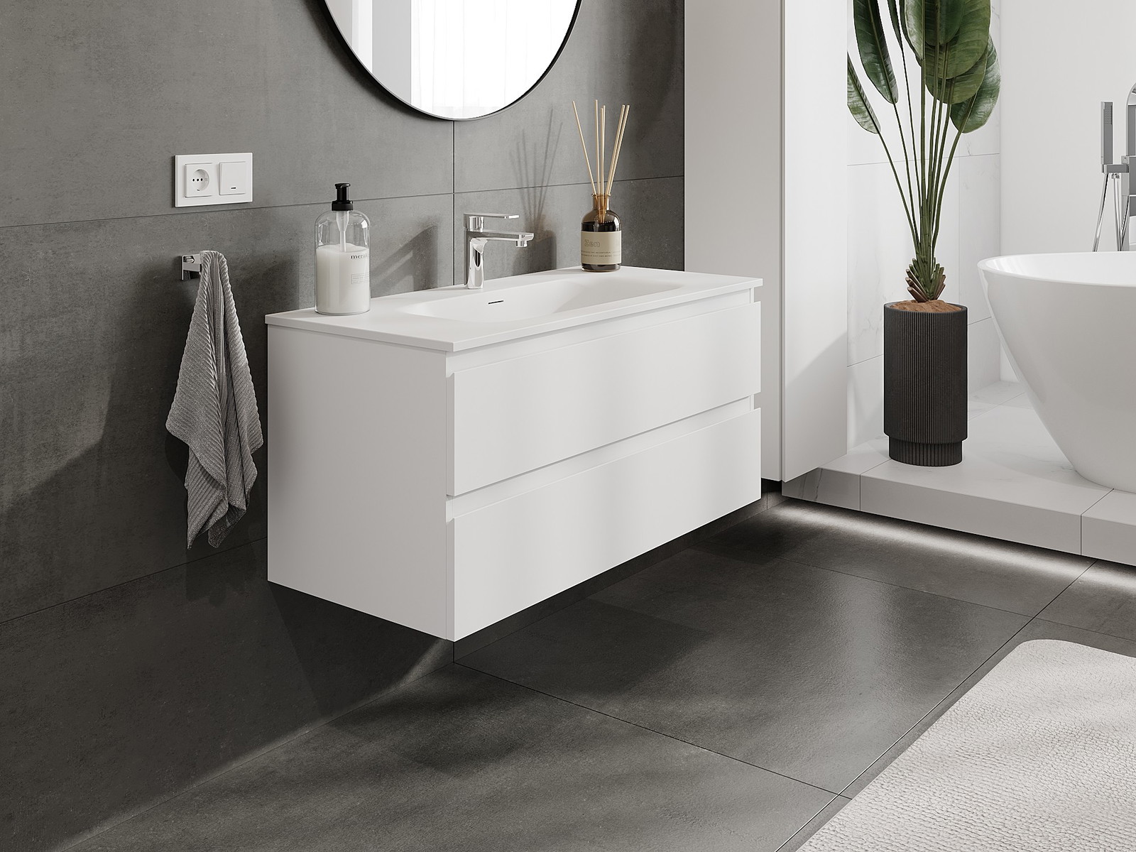 Our modular bathroom furniture can be combined in various colour configurations, allowing for complete personalisation. You can choose both the appearance and functions of individual elements, enabling you to adapt the furniture to your own stylistic and functional preferences.