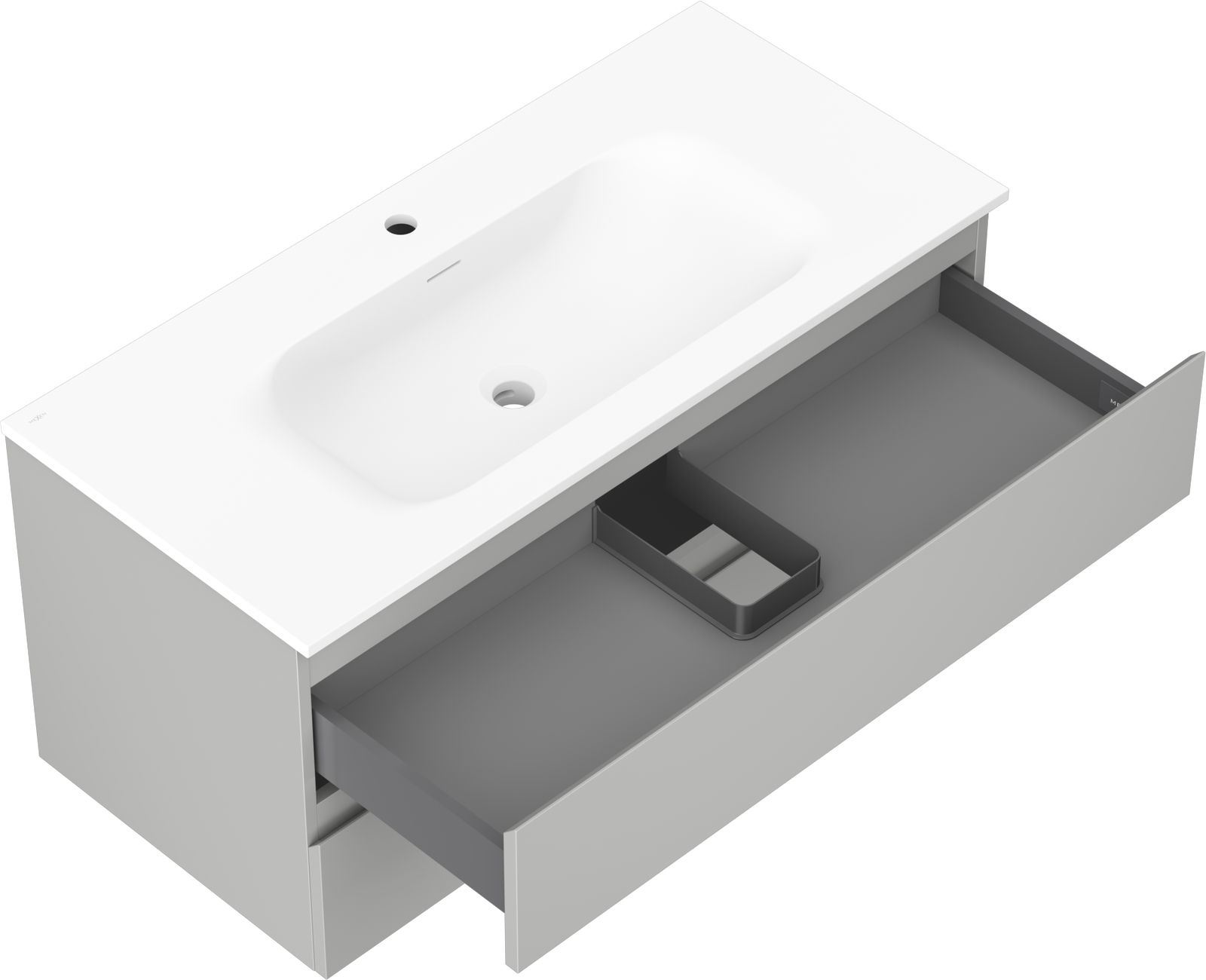 The cutout in the drawer is designed in such a way as to accommodate the siphon, which is essential in sink installations. This allows the furniture to be fully functional without having to give up drawer space for the installation.
