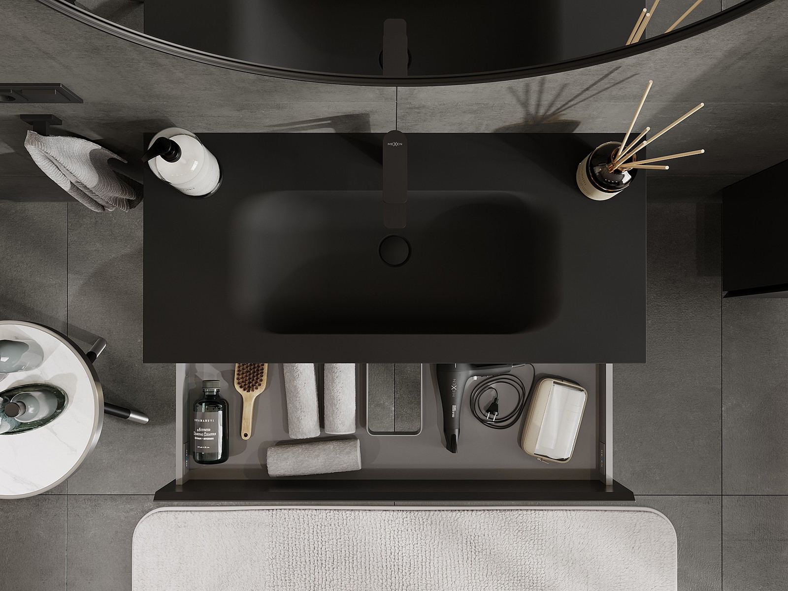 The cabinet carcass is delivered fully assembled, which means maximum convenience and time savings. You don't have to spend hours assembling the furniture – just install it in your chosen spot in the bathroom. This is an ideal solution for those who appreciate quick assembly and immediate results.