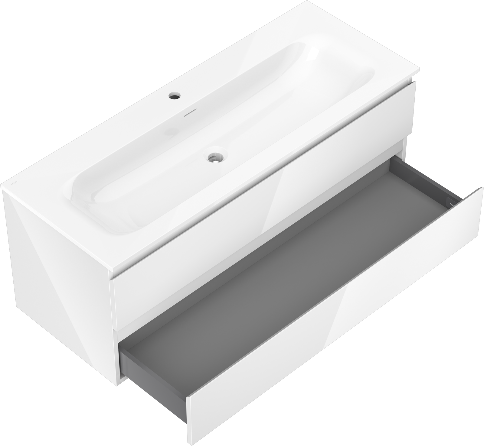 The cutout in the drawer is designed in such a way as to accommodate the siphon, which is essential in sink installations. This allows the furniture to be fully functional without having to give up drawer space for the installation.