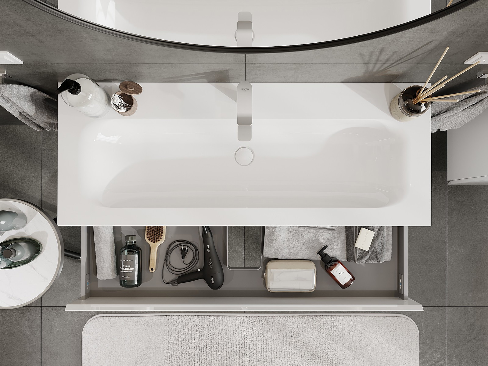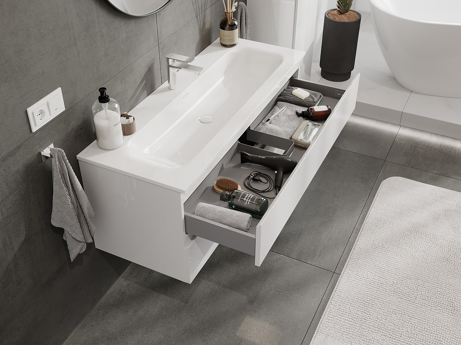 Our modular bathroom furniture can be combined in various colour configurations, allowing for complete personalisation. You can choose both the appearance and functions of individual elements, enabling you to adapt the furniture to your own stylistic and functional preferences.