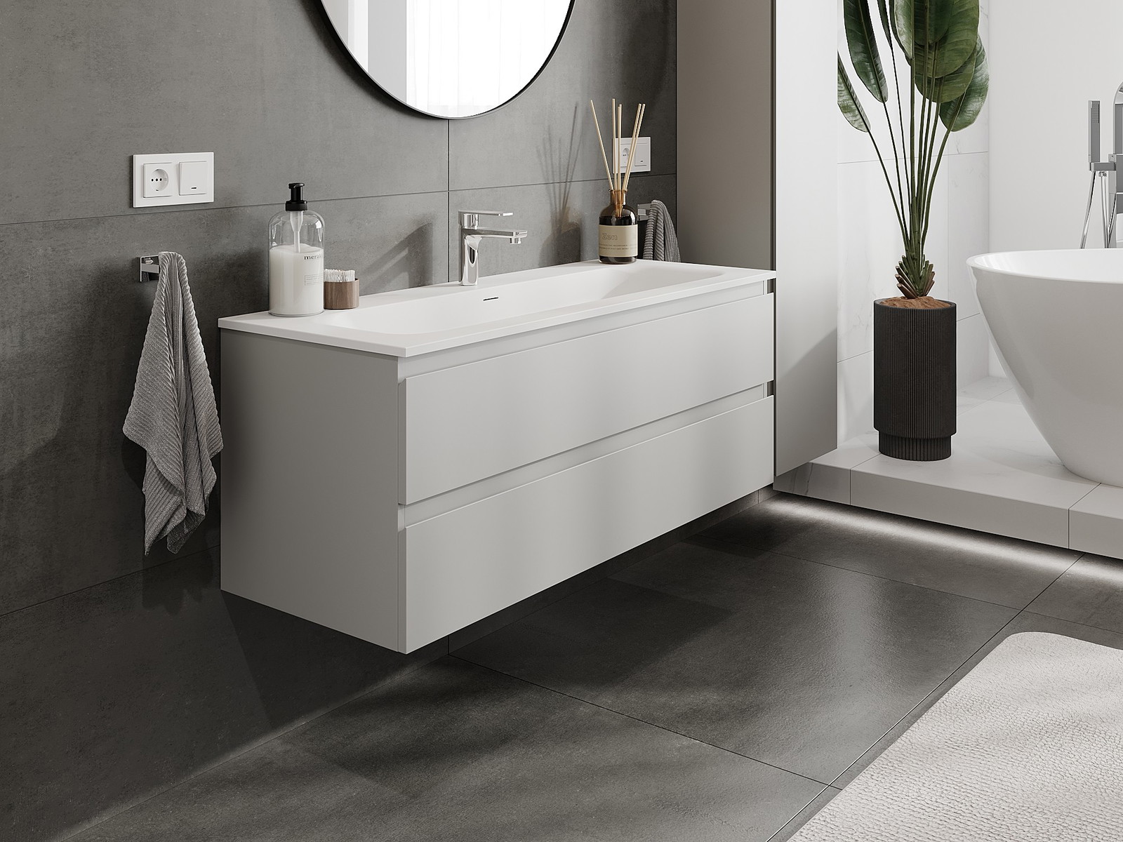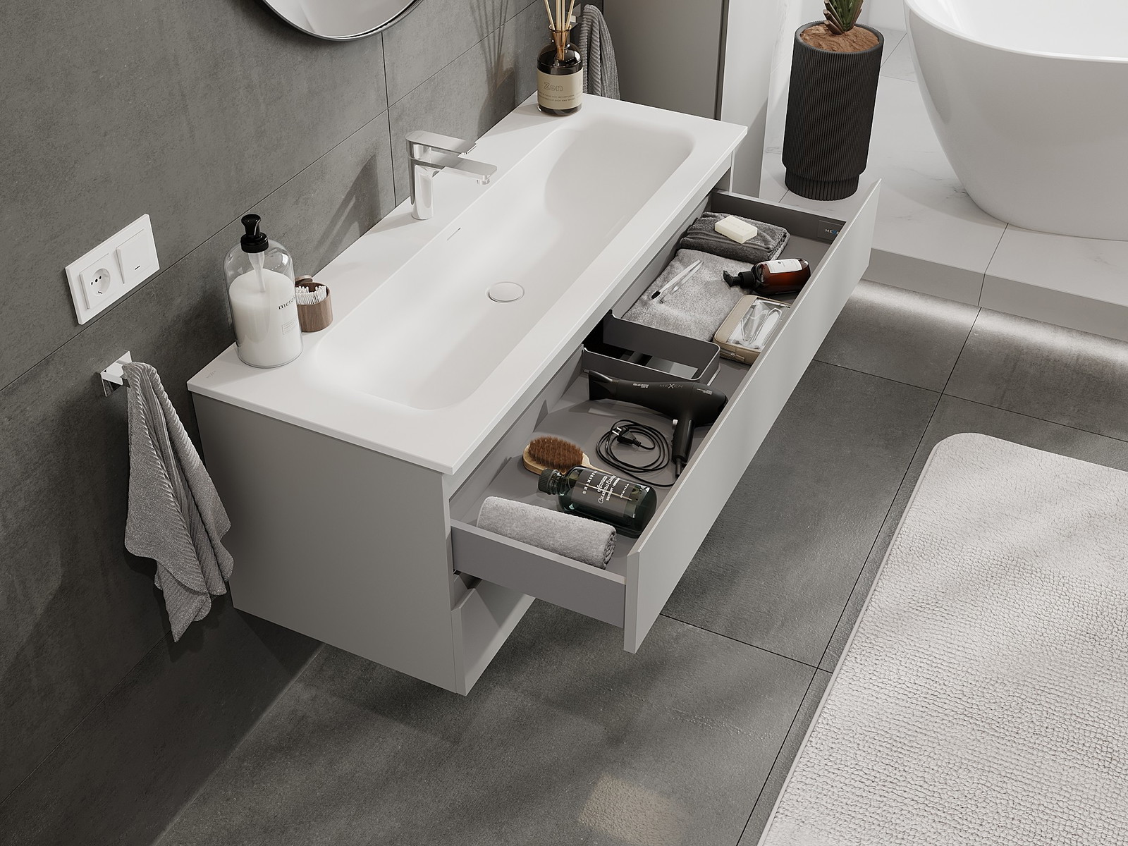 Our modular bathroom furniture can be combined in various colour configurations, allowing for complete personalisation. You can choose both the appearance and functions of individual elements, enabling you to adapt the furniture to your own stylistic and functional preferences.