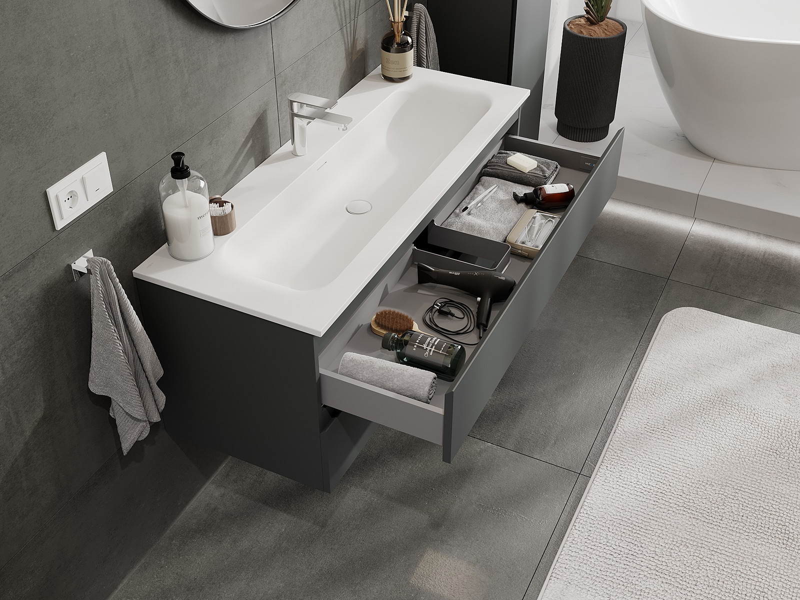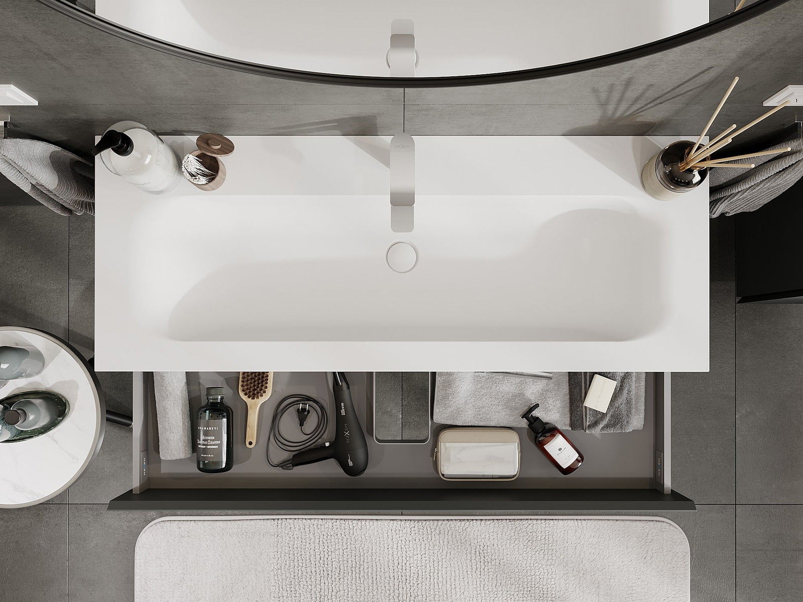 Our modular bathroom furniture can be combined in various colour configurations, allowing for complete personalisation. You can choose both the appearance and functions of individual elements, enabling you to adapt the furniture to your own stylistic and functional preferences.