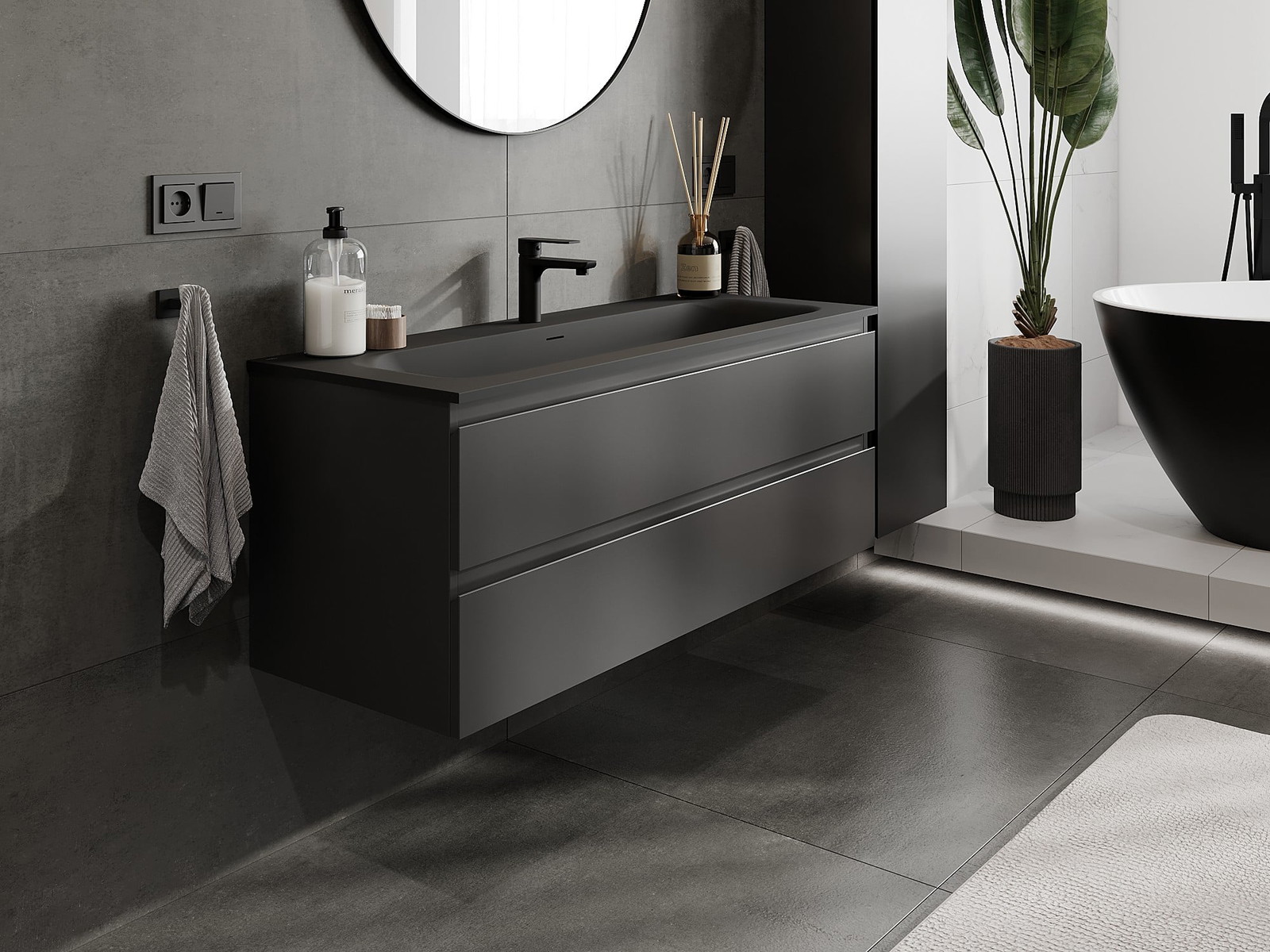 Our modular bathroom furniture can be combined in various colour configurations, allowing for complete personalisation. You can choose both the appearance and functions of individual elements, enabling you to adapt the furniture to your own stylistic and functional preferences.