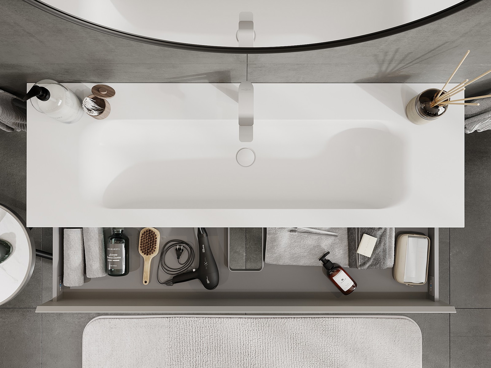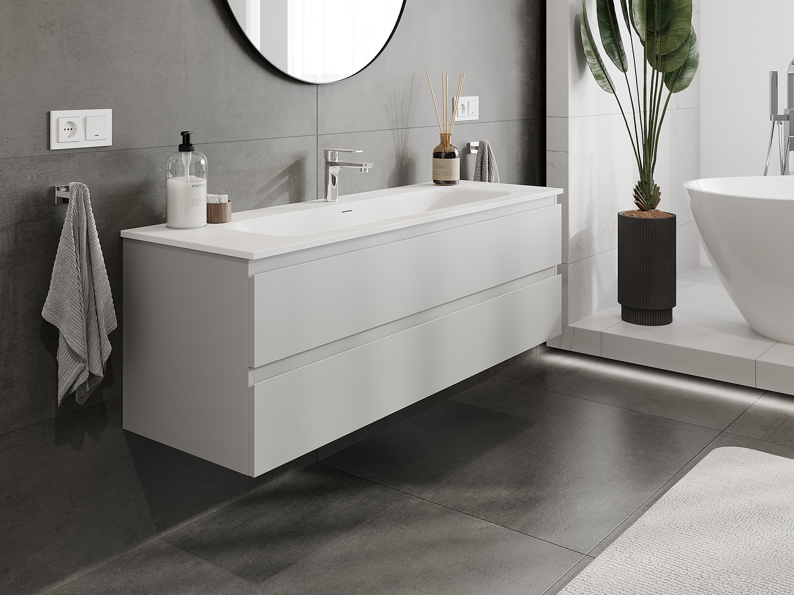 Our modular bathroom furniture can be combined in various colour configurations, allowing for complete personalisation. You can choose both the appearance and functions of individual elements, enabling you to adapt the furniture to your own stylistic and functional preferences.