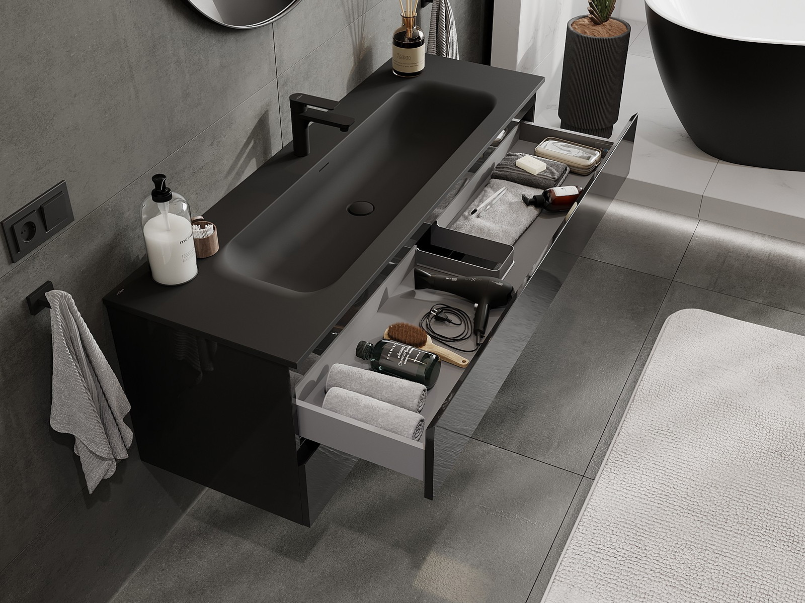 Our modular bathroom furniture can be combined in various colour configurations, allowing for complete personalisation. You can choose both the appearance and functions of individual elements, enabling you to adapt the furniture to your own stylistic and functional preferences.