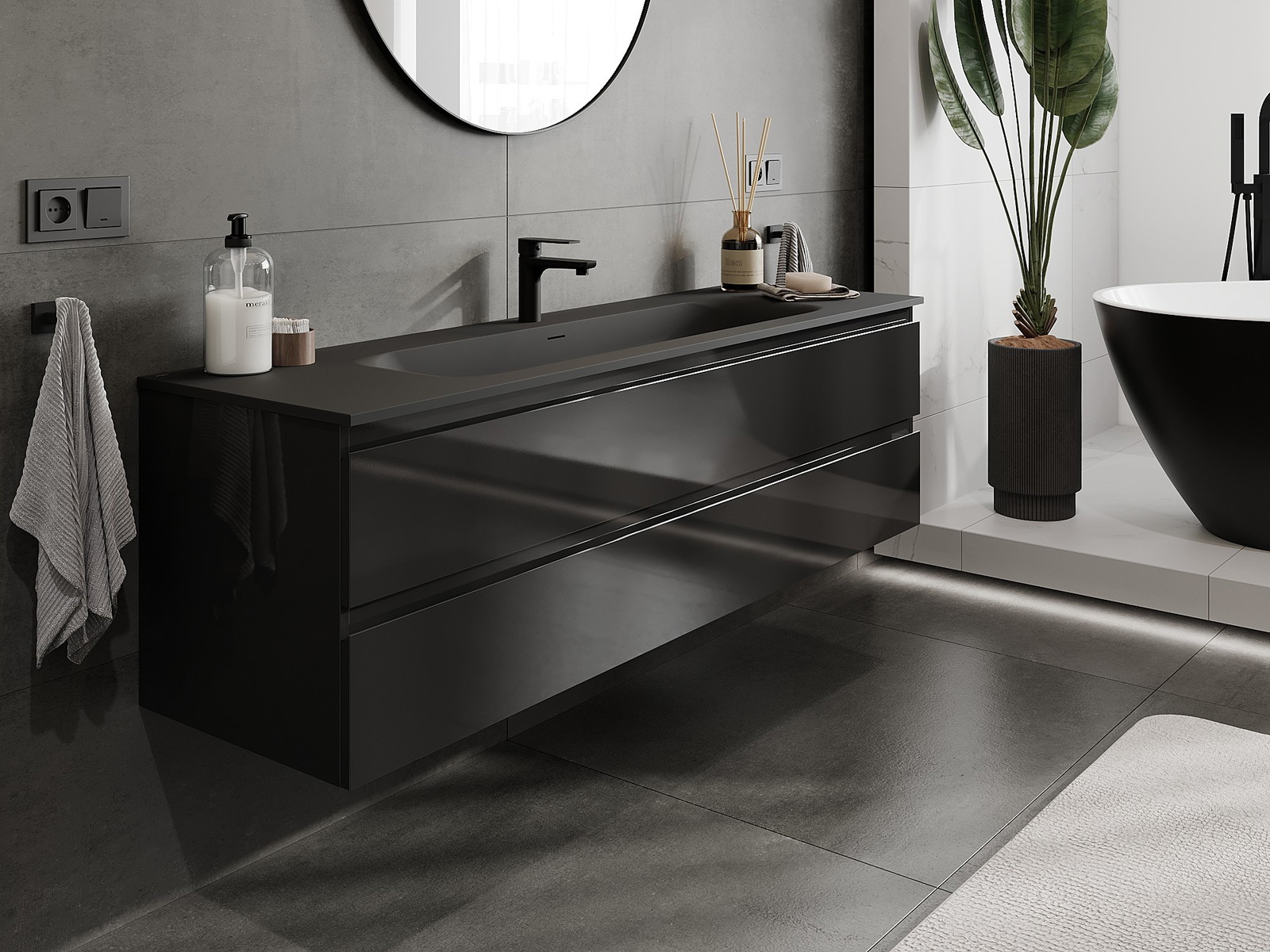 Our modular bathroom furniture can be combined in various colour configurations, allowing for complete personalisation. You can choose both the appearance and functions of individual elements, enabling you to adapt the furniture to your own stylistic and functional preferences.