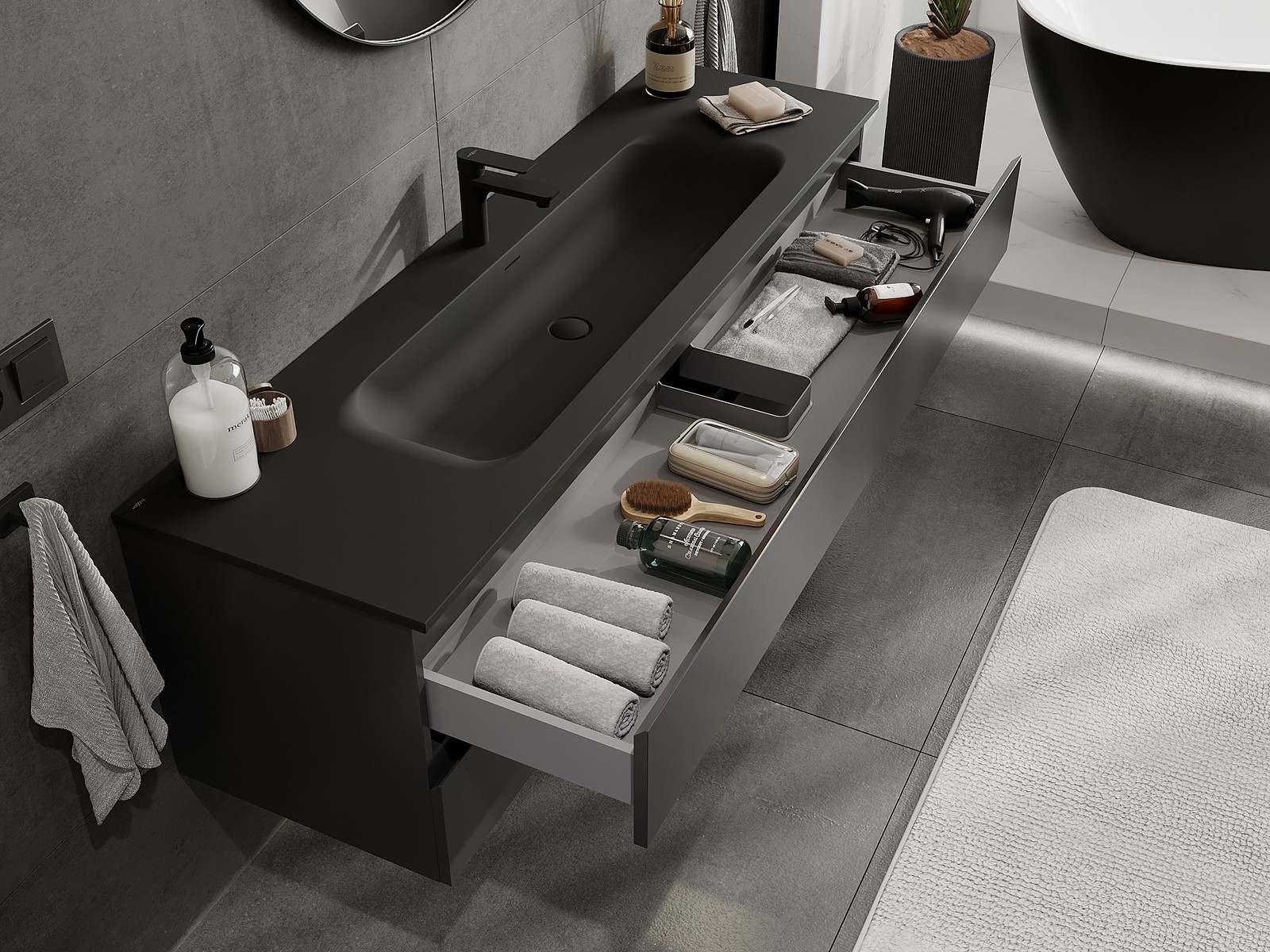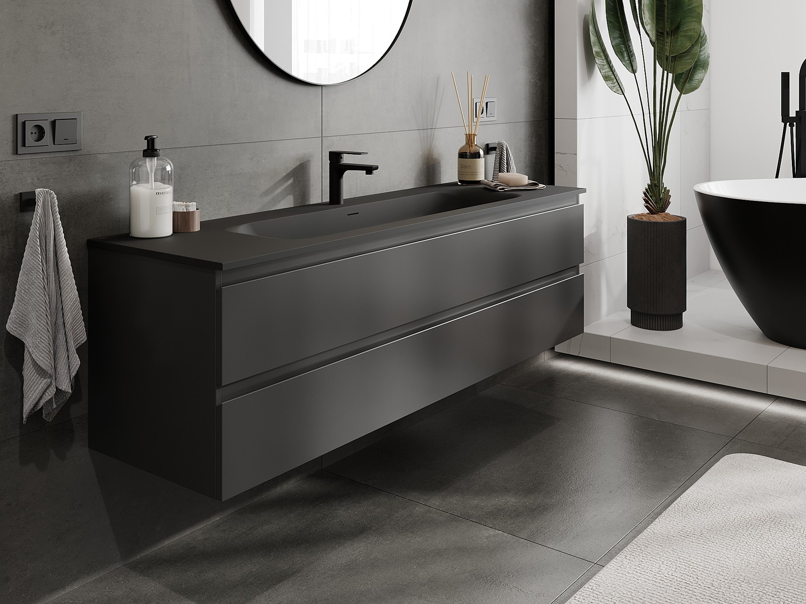 Our modular bathroom furniture can be combined in various colour configurations, allowing for complete personalisation. You can choose both the appearance and functions of individual elements, enabling you to adapt the furniture to your own stylistic and functional preferences.
