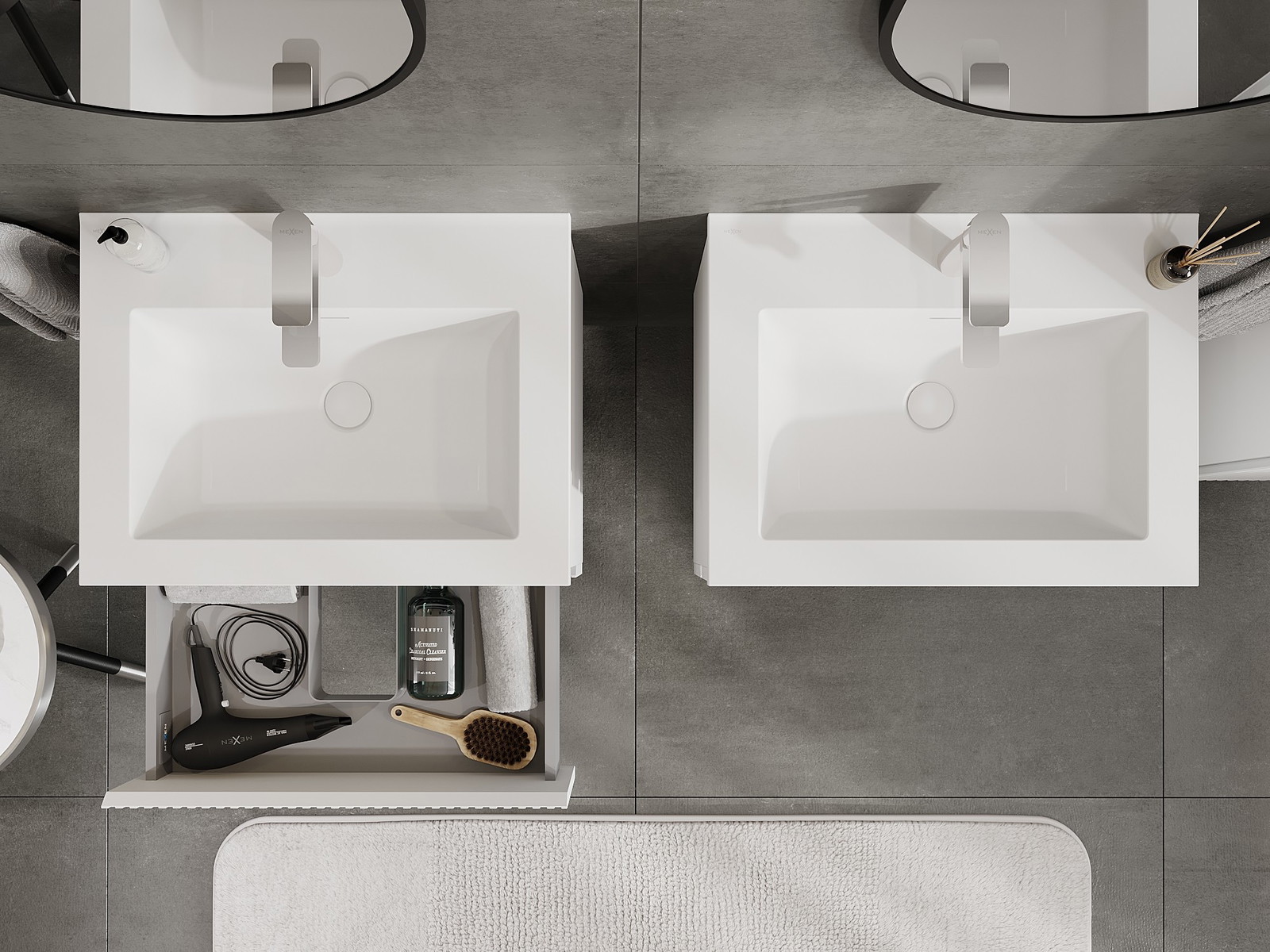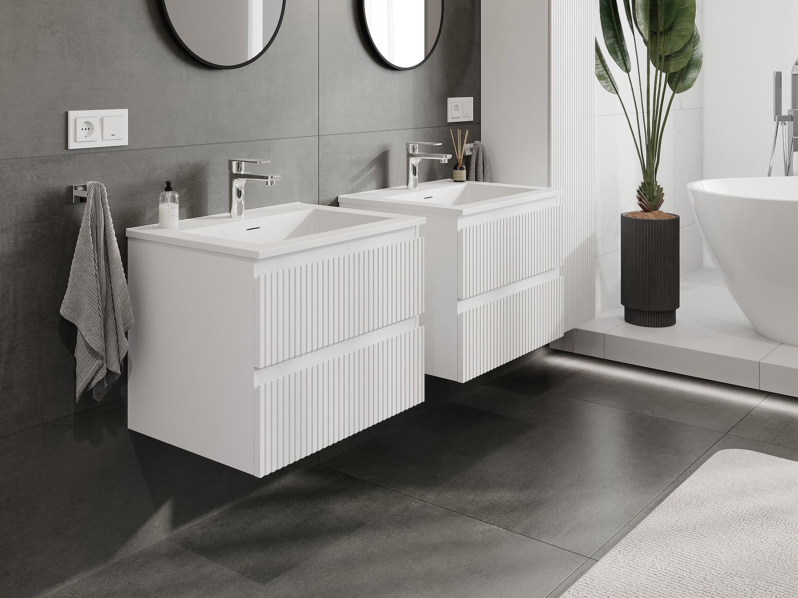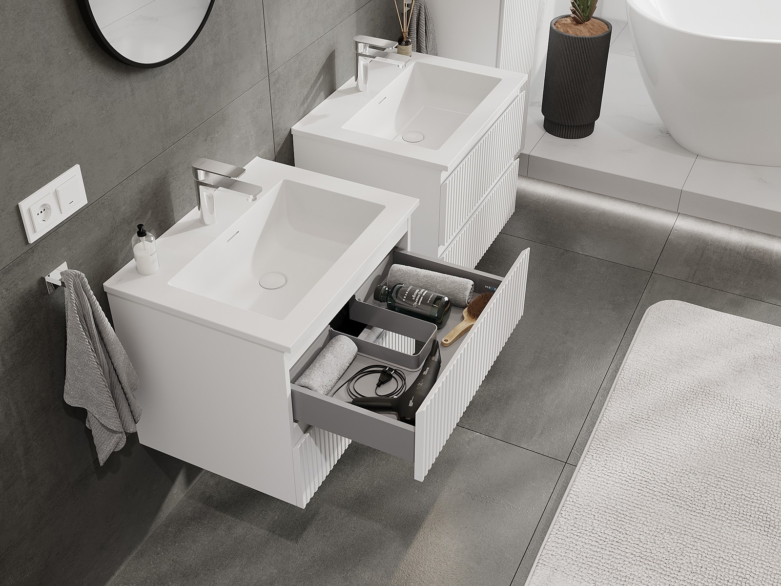 Our modular bathroom furniture can be combined in various colour configurations, allowing for complete personalisation. You can choose both the appearance and functions of individual elements, enabling you to adapt the furniture to your own stylistic and functional preferences.