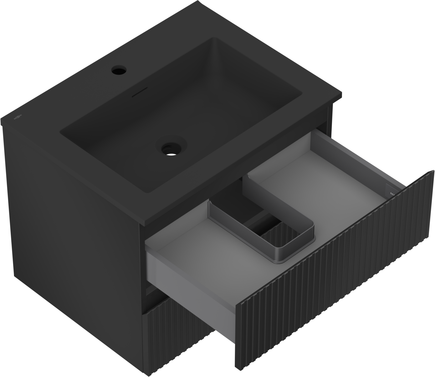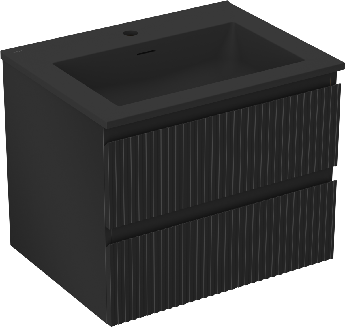 Mexen Rivel 60 cm Bathroom Cabinet with Otis Sink, 2 Drawers, Grooved, Black Matte - 91A20-06047-2-BFF71-W18M71