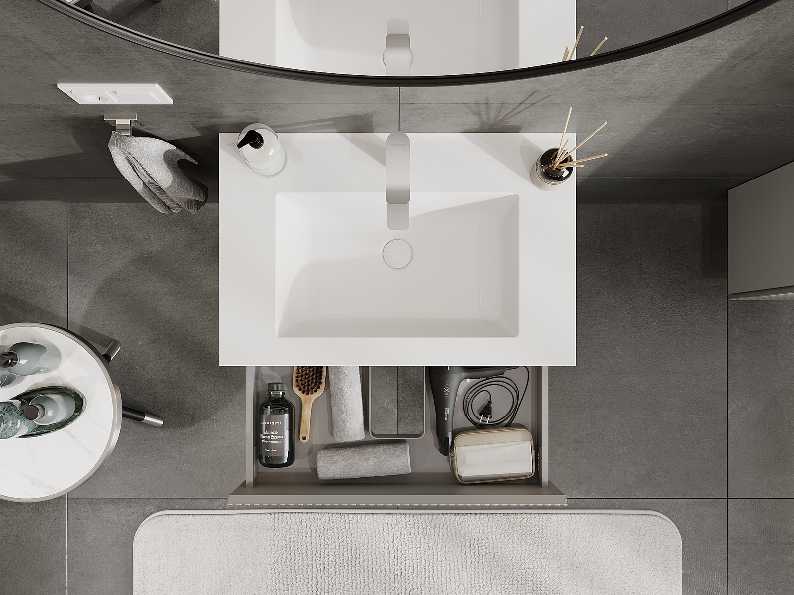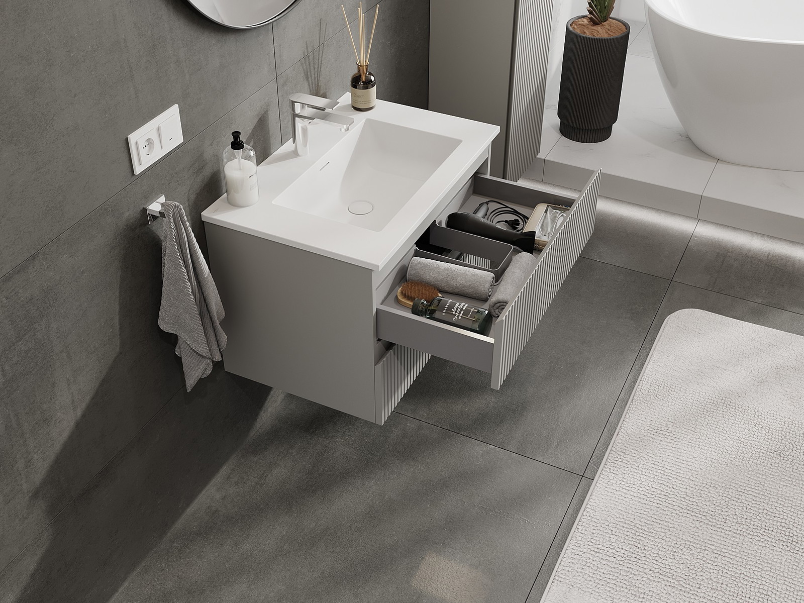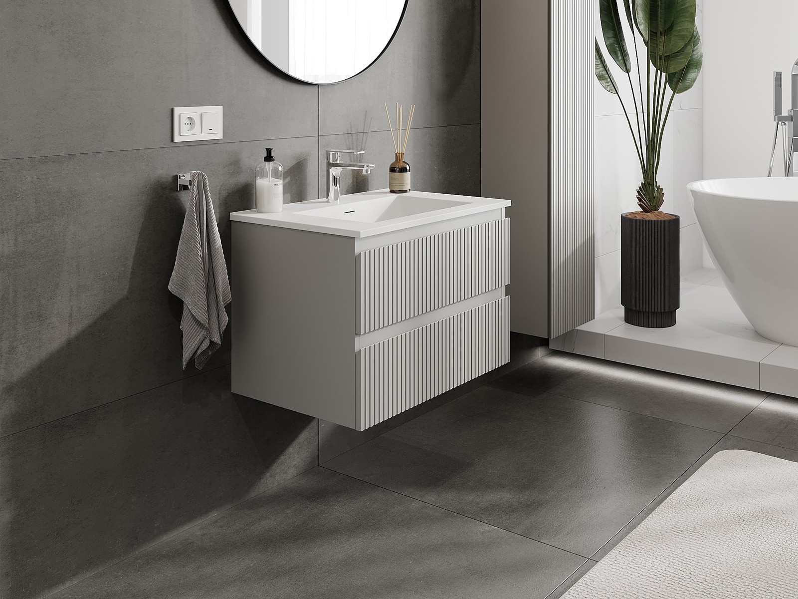 Our modular bathroom furniture can be combined in various colour configurations, allowing for complete personalisation. You can choose both the appearance and functions of individual elements, enabling you to adapt the furniture to your own stylistic and functional preferences.