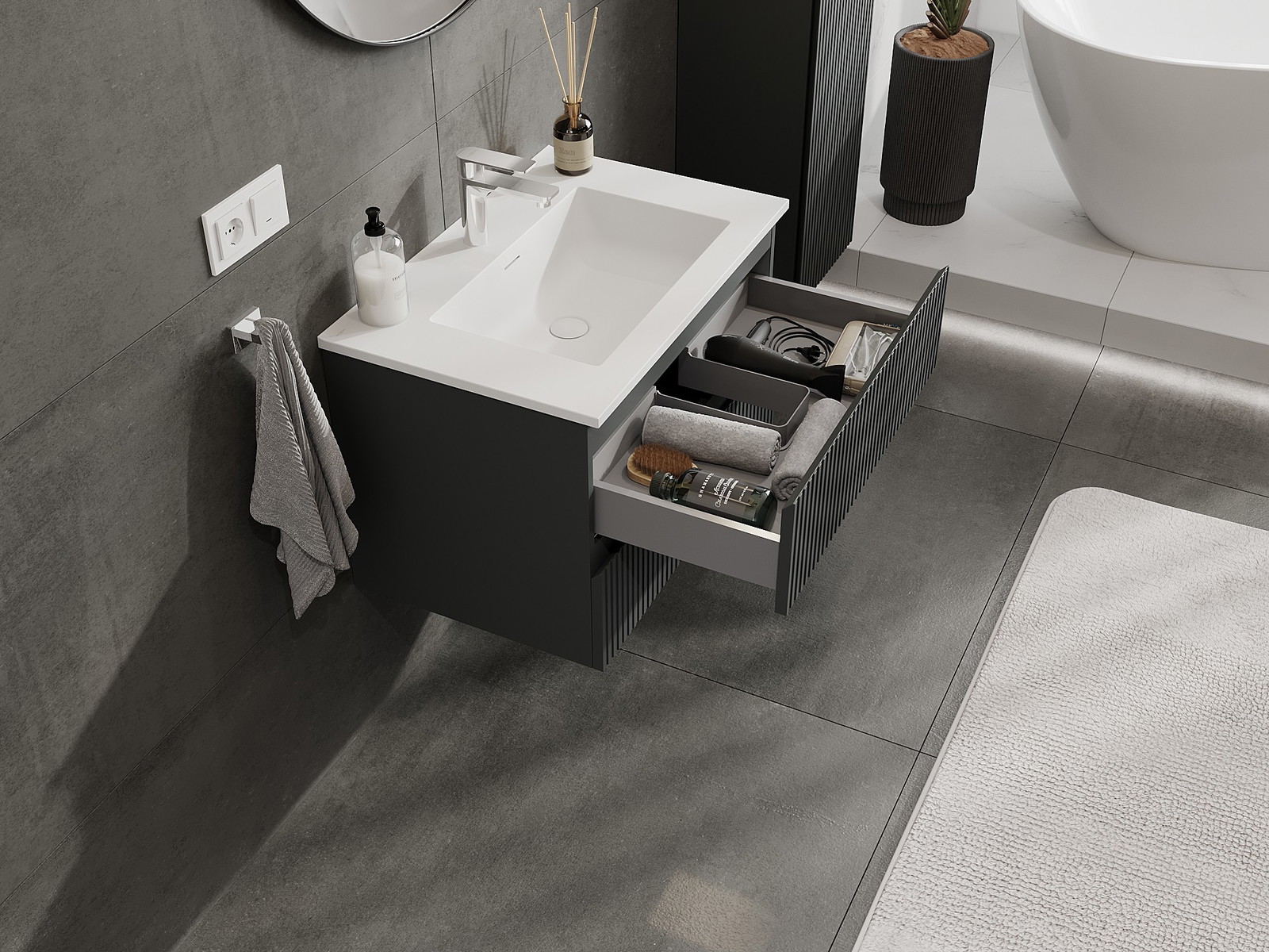 The cabinet carcass is delivered fully assembled, which means maximum convenience and time savings. You don't have to spend hours assembling the furniture – just install it in your chosen spot in the bathroom. This is an ideal solution for those who appreciate quick assembly and immediate results.