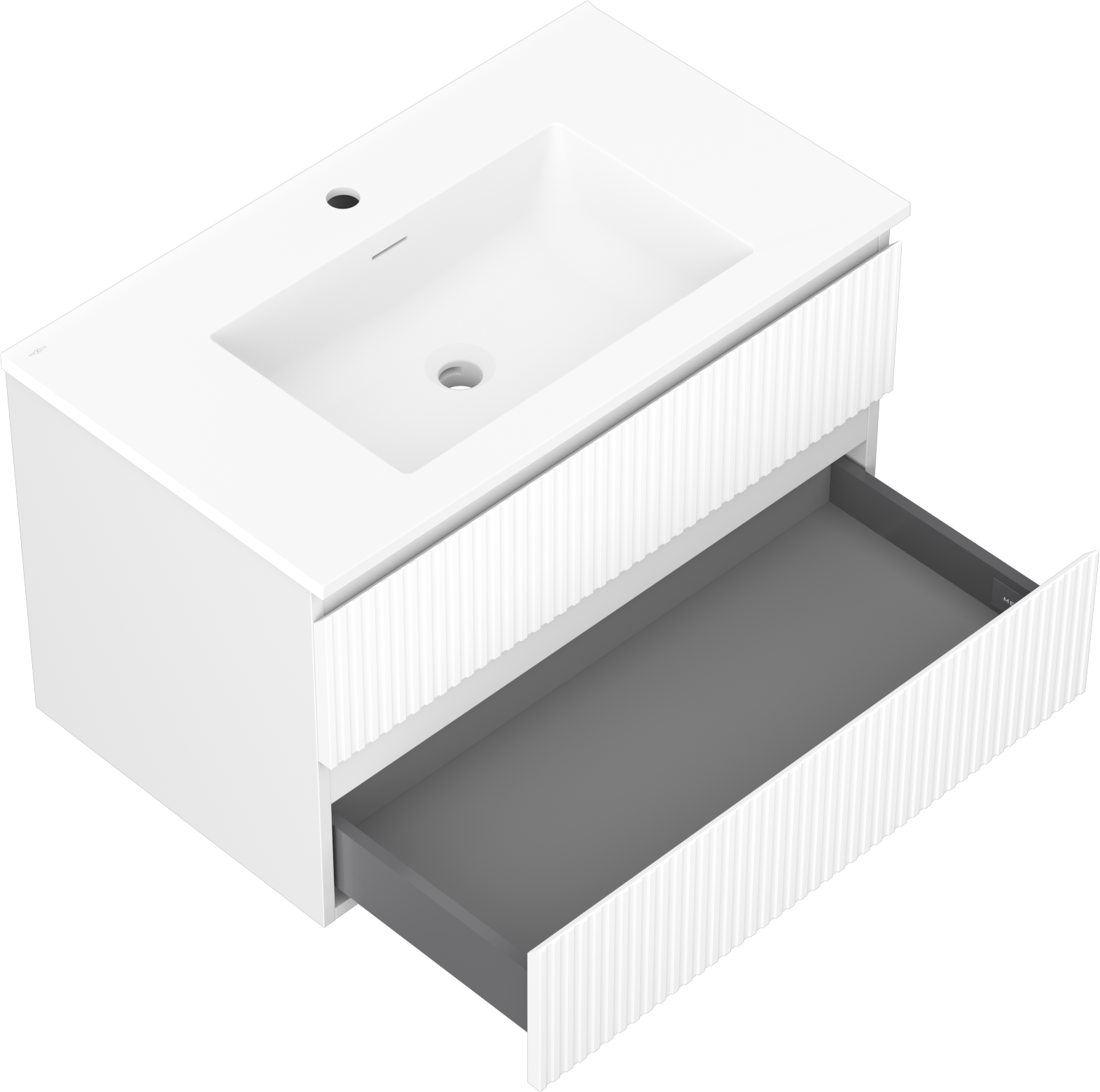 Mexen Rivel bathroom cabinet 80 cm with Otis washbasin, 2 drawers, fluted, white matte - 91A20-08047-2-BFF01-W18M01
