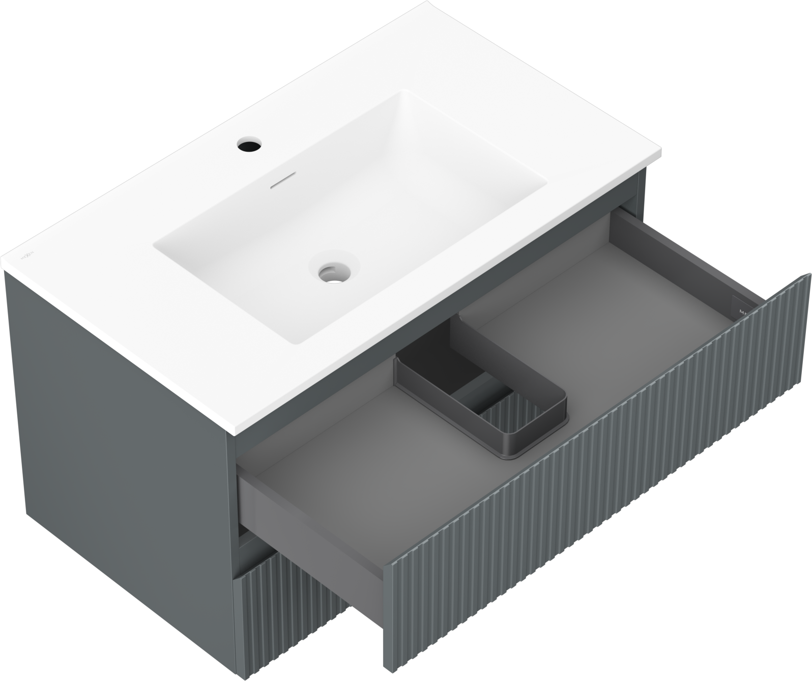 Mexen Rivel bathroom cabinet 80 cm with Otis sink, 2 drawers, grooved, matte graphite/matte white - 91A20-08047-2-BFF66-W18M0