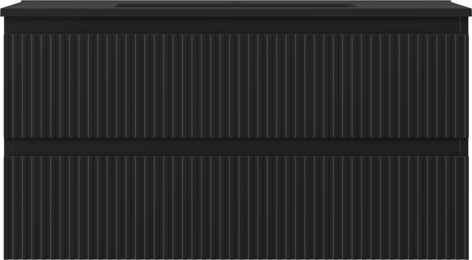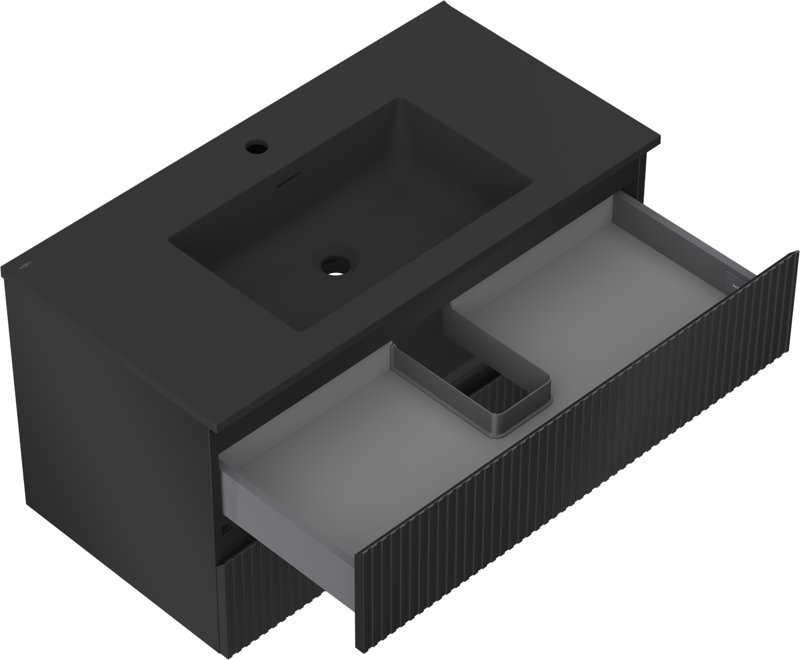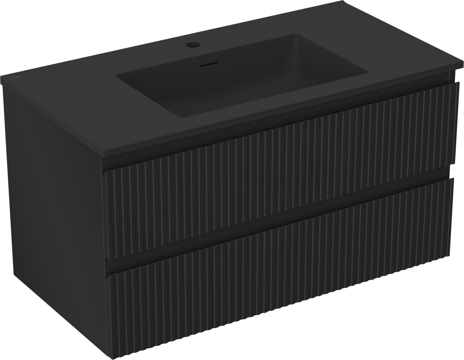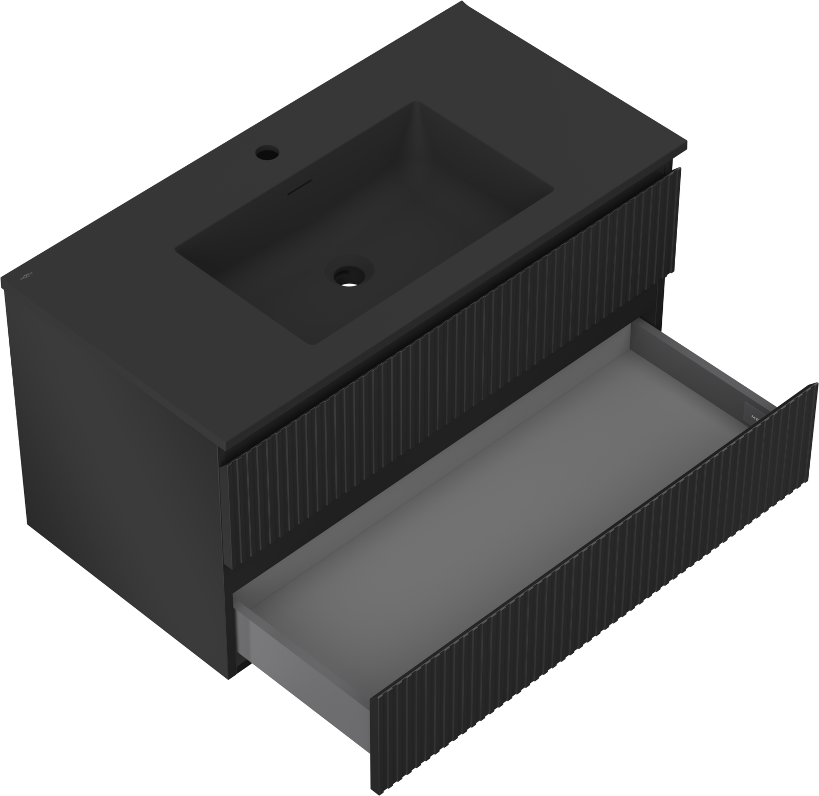 Mexen Rivel bathroom cabinet 90 cm with Otis washbasin, 2 drawers, grooved, black matte - 91A20-09047-2-BFF71-W18M71