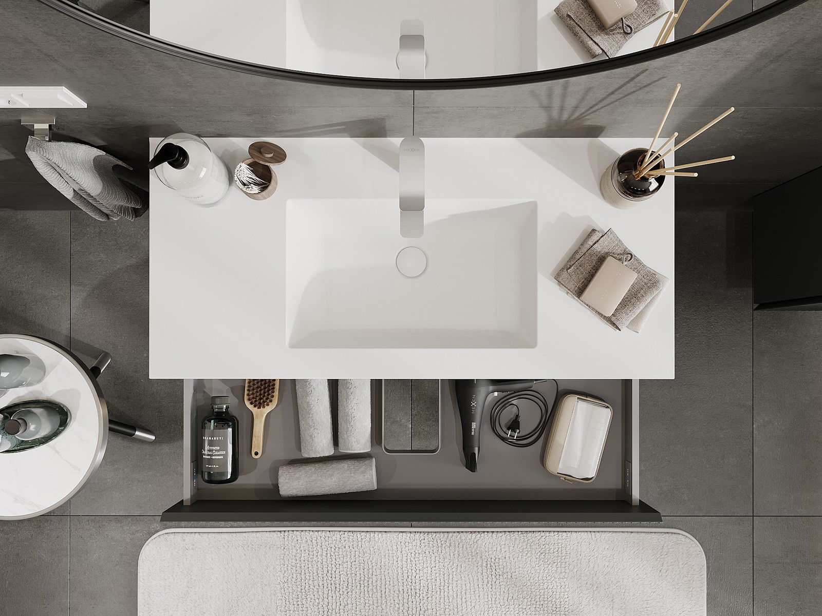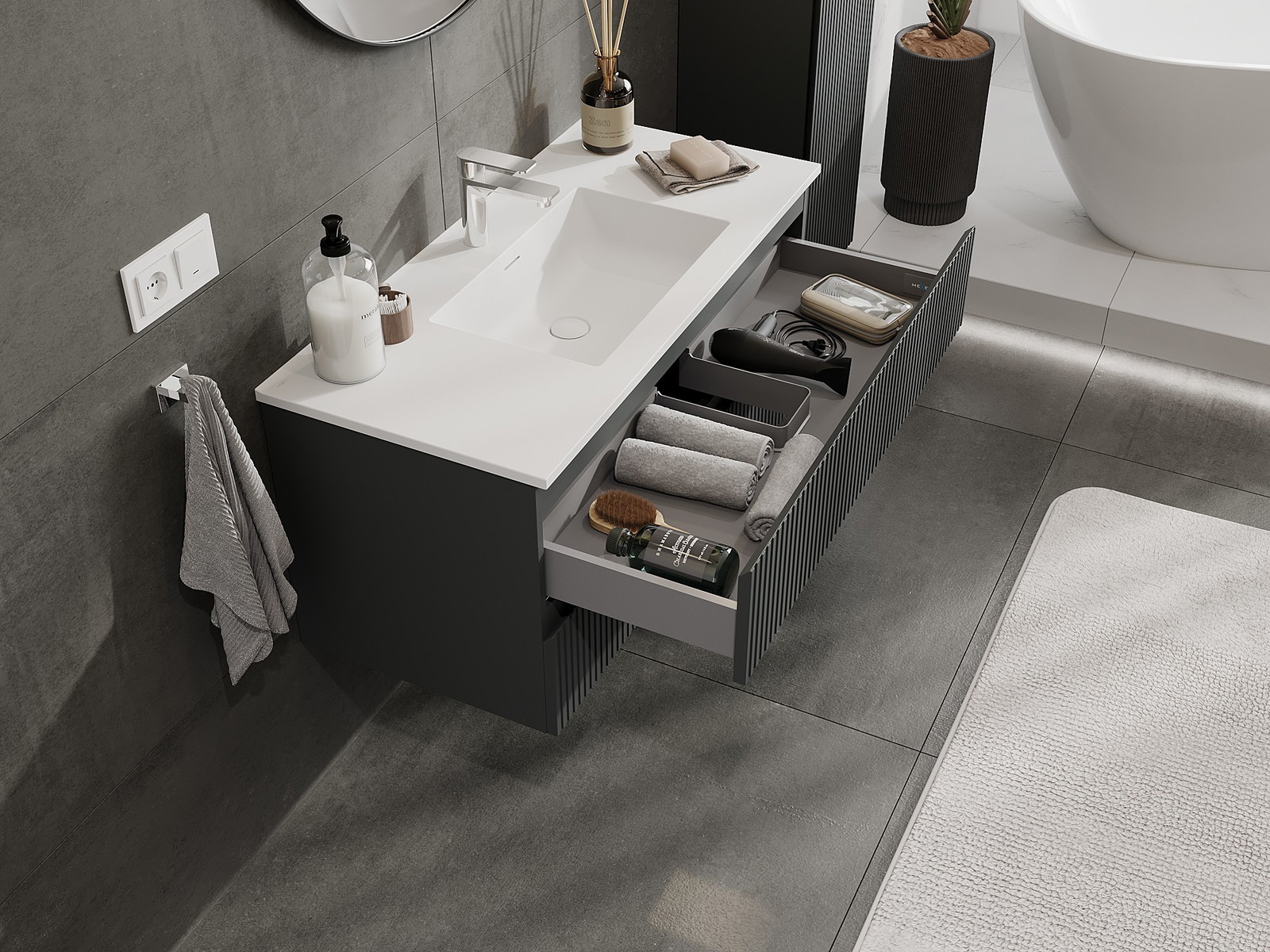Our modular bathroom furniture can be combined in various colour configurations, allowing for complete personalisation. You can choose both the appearance and functions of individual elements, enabling you to adapt the furniture to your own stylistic and functional preferences.