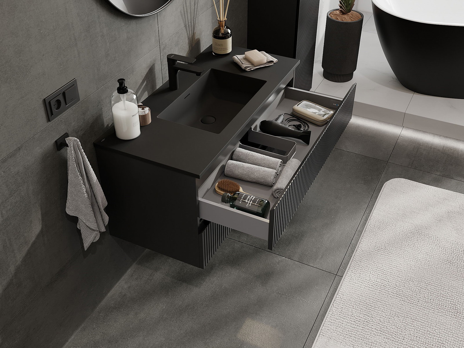 Our modular bathroom furniture can be combined in various colour configurations, allowing for complete personalisation. You can choose both the appearance and functions of individual elements, enabling you to adapt the furniture to your own stylistic and functional preferences.