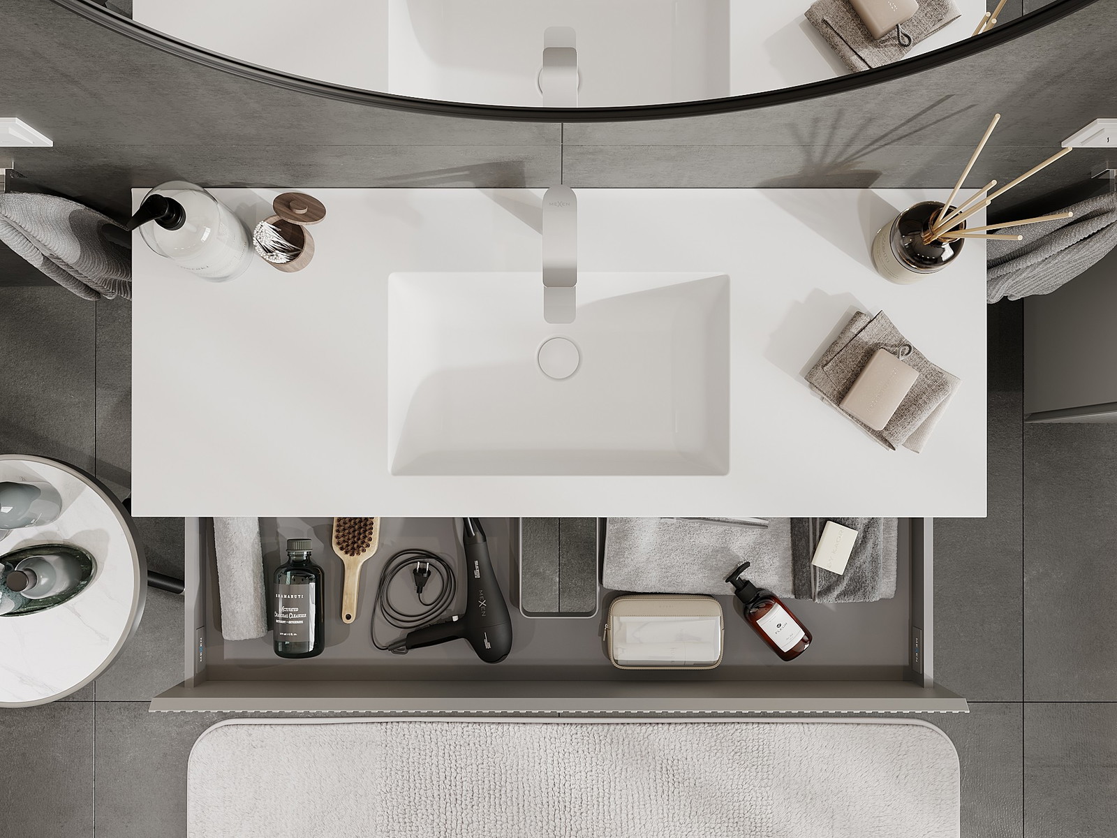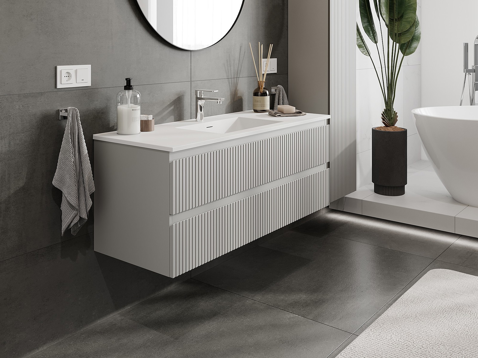 Our modular bathroom furniture can be combined in various colour configurations, allowing for complete personalisation. You can choose both the appearance and functions of individual elements, enabling you to adapt the furniture to your own stylistic and functional preferences.