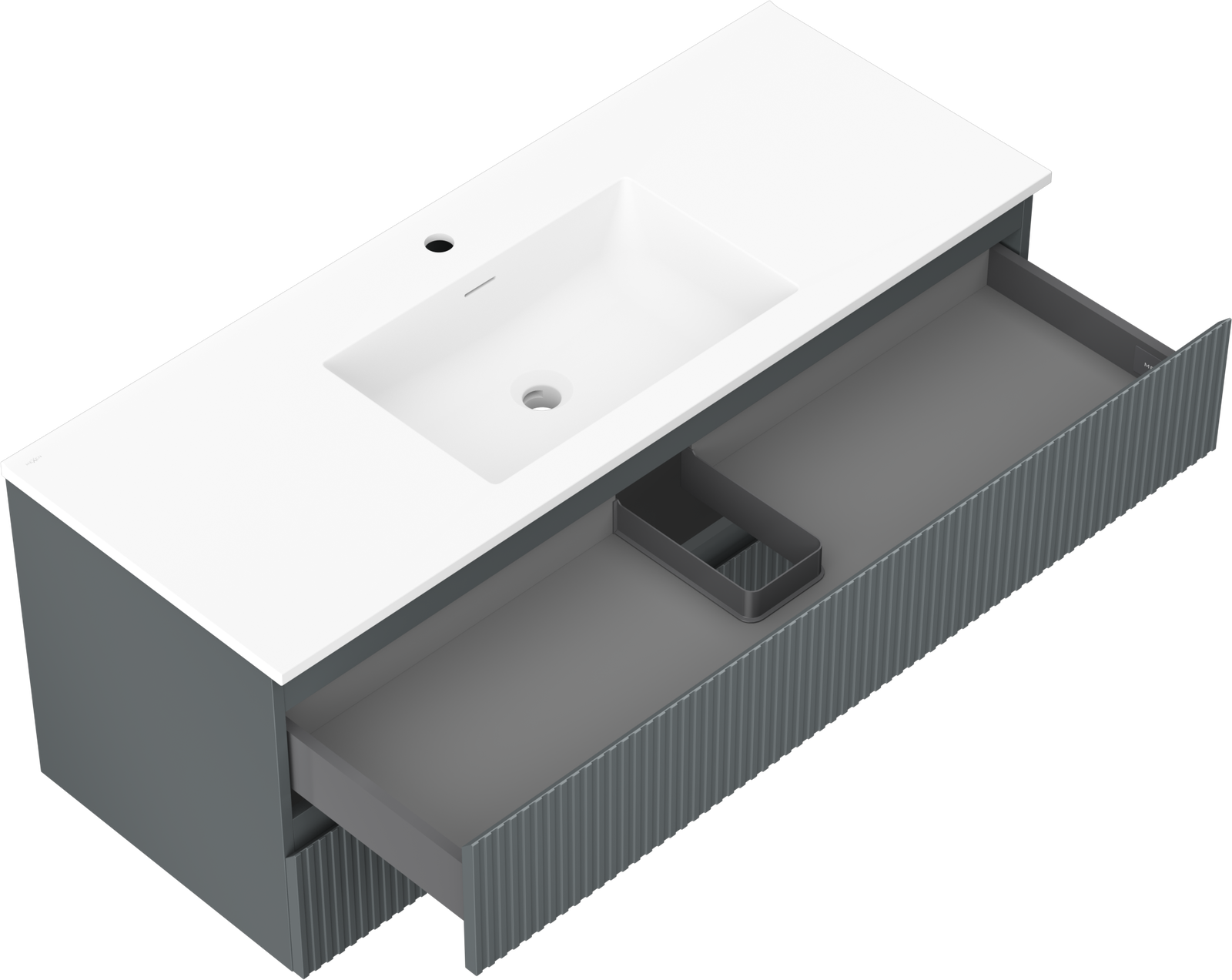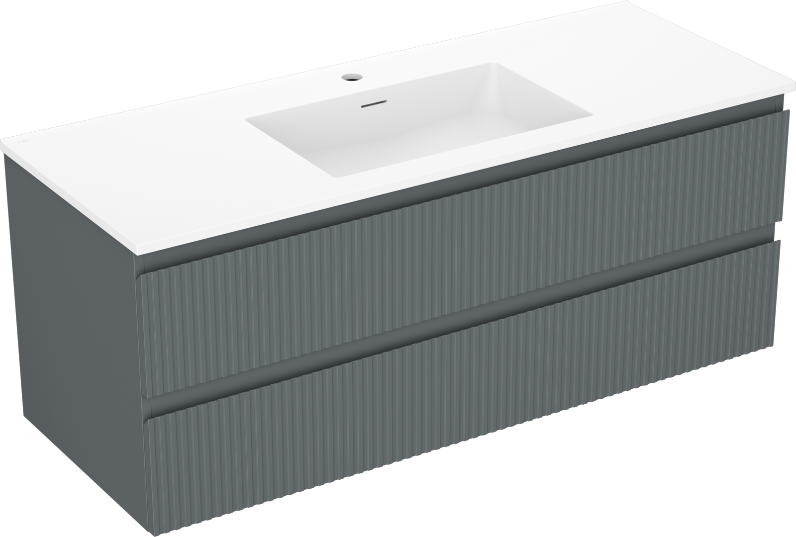 Mexen Rivel bathroom cabinet 120 cm with Otis sink, 2 drawers, fluted, matte graphite/white matte - 91A20-12047-2-BFF66-W18M