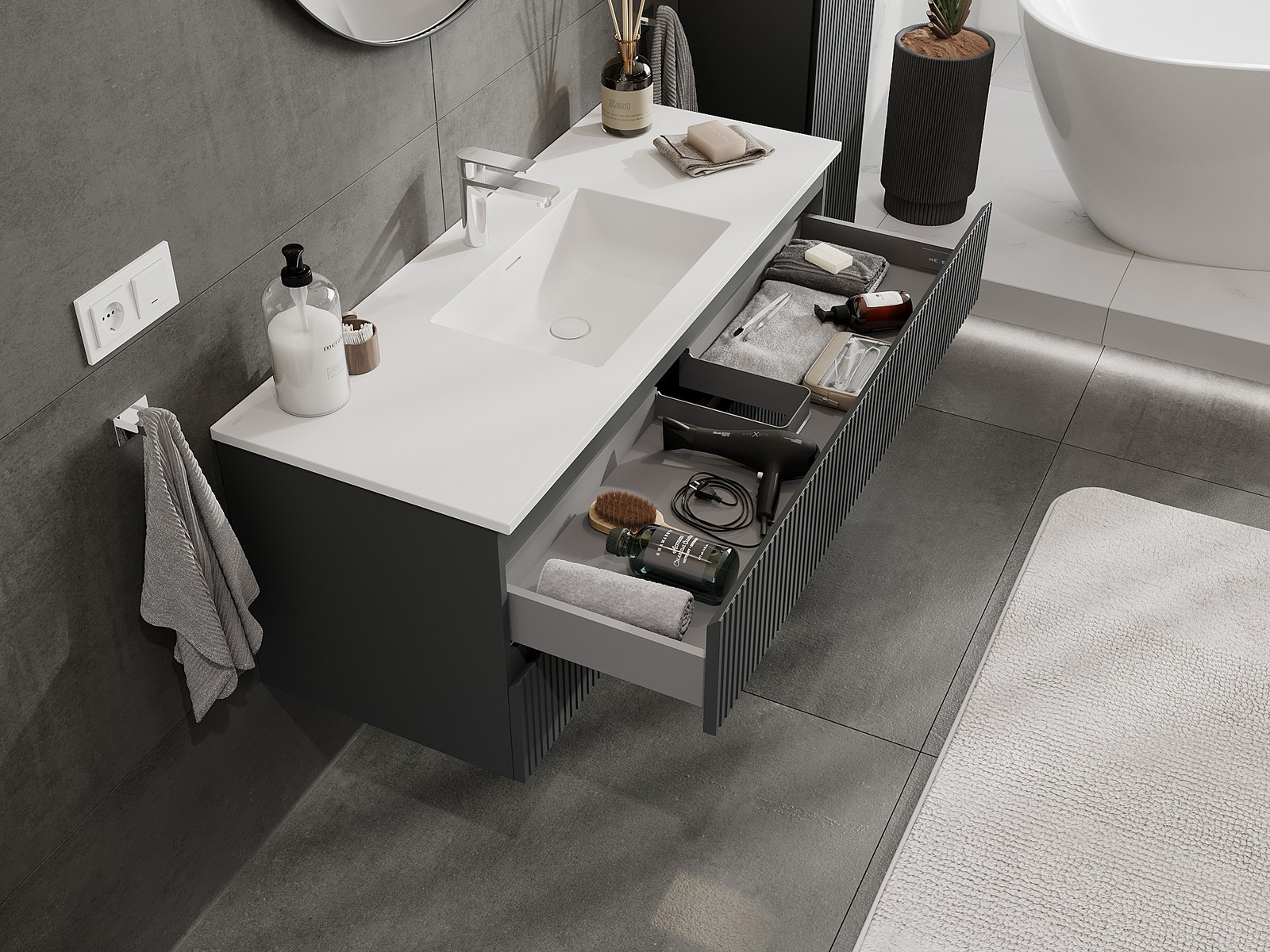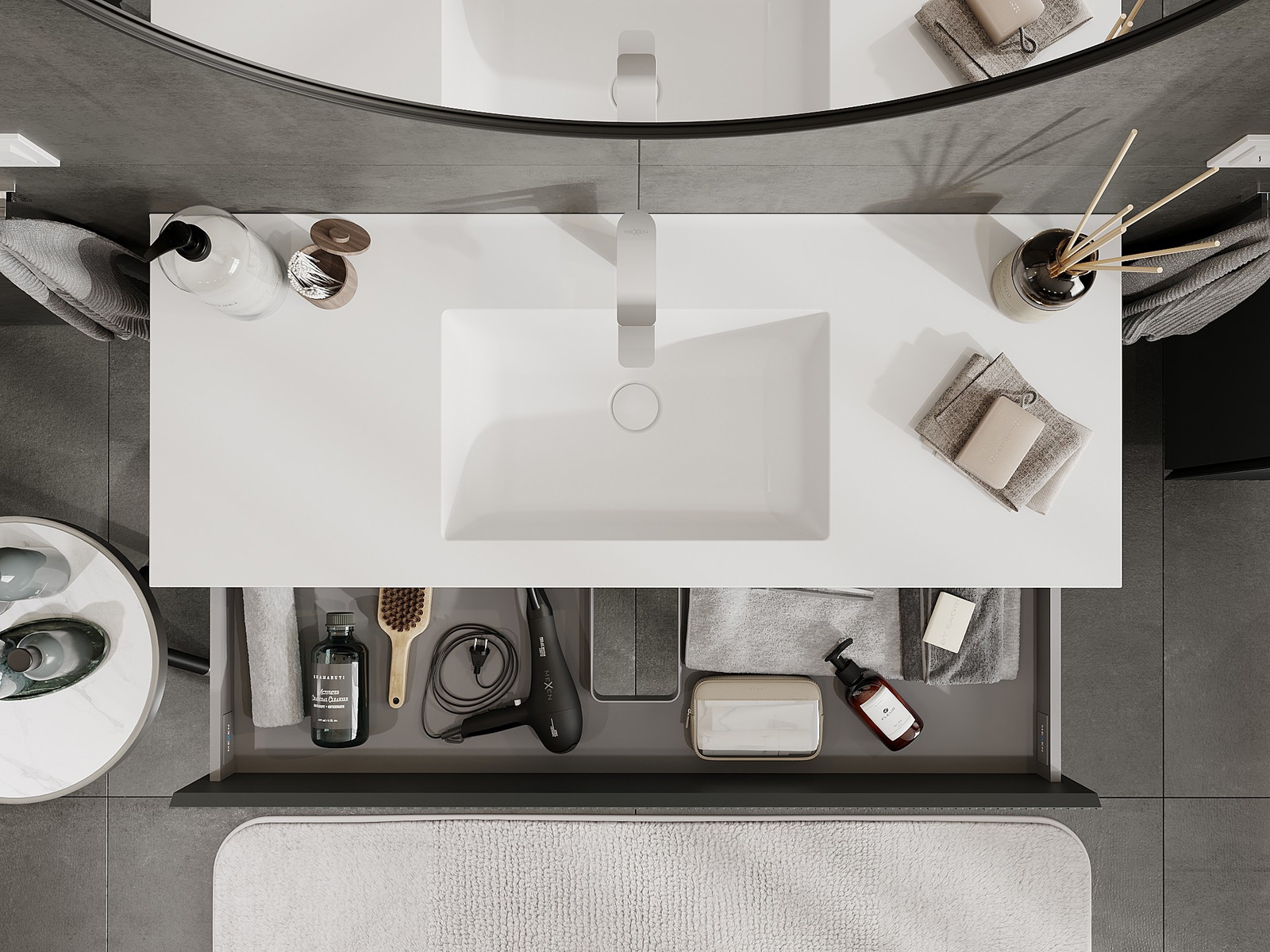 Our modular bathroom furniture can be combined in various colour configurations, allowing for complete personalisation. You can choose both the appearance and functions of individual elements, enabling you to adapt the furniture to your own stylistic and functional preferences.