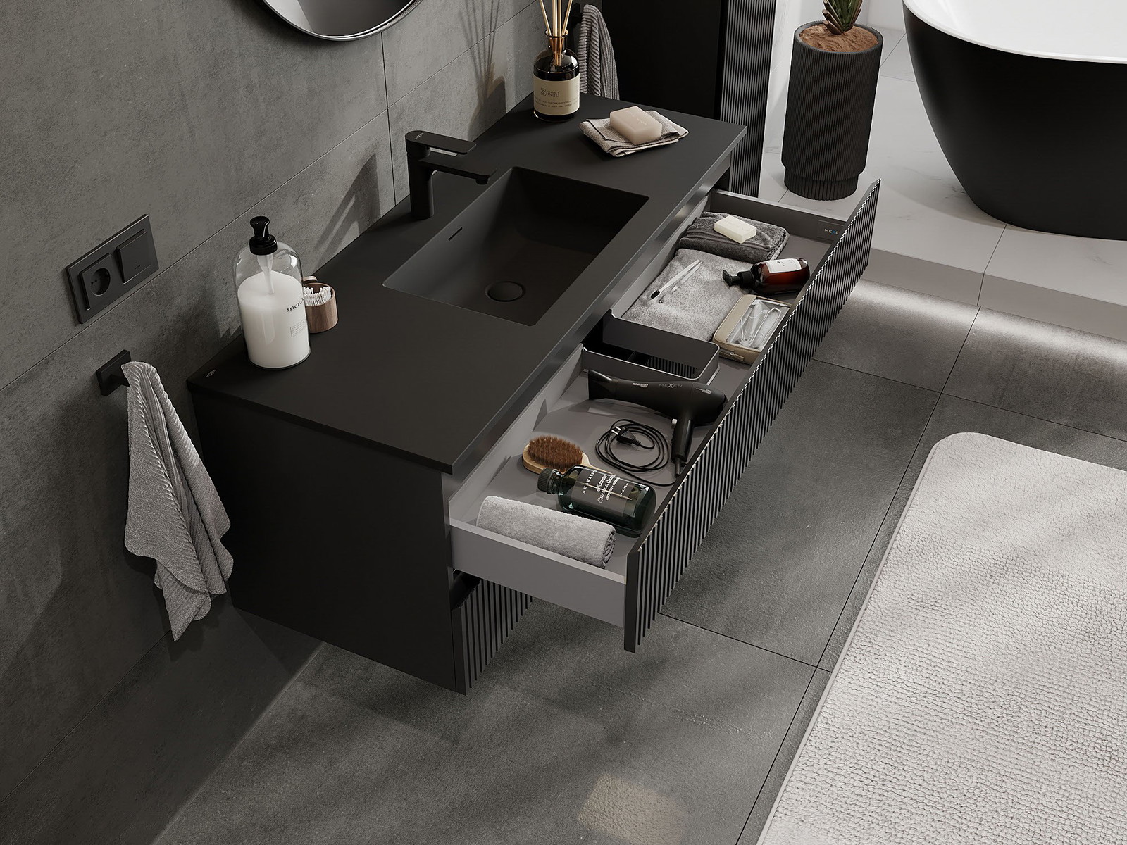 Our modular bathroom furniture can be combined in various colour configurations, allowing for complete personalisation. You can choose both the appearance and functions of individual elements, enabling you to adapt the furniture to your own stylistic and functional preferences.
