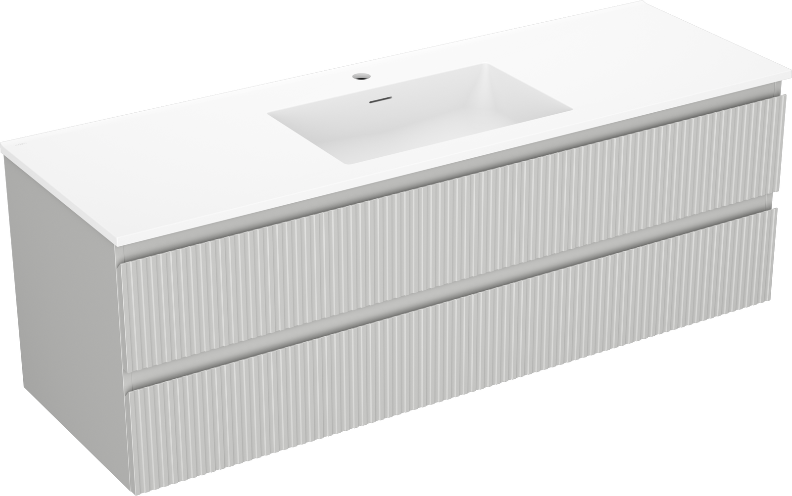 Mexen Rivel bathroom cabinet 140 cm with sink Otis, 2 drawers, grooved, gray matte/white matte - 91A20-14047-2-BFF62-W18M0